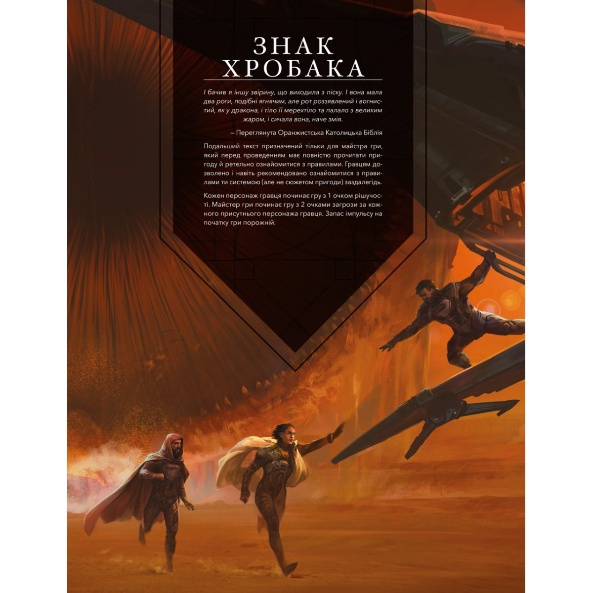 Дюна. Пригоди в Імперії - Швидкий старт ідеально підходить як для досвідчених гравців рольових ігор, так і для новачків, які хочуть спробувати себе в рольових іграх у світі Дюна. З цією грою можна розпочати свій шлях у рольових іграх, а також весело провести час з друзями та родиною. Для шанувальників Дюни це чудова можливість поринути в унікальний всесвіт, що не потребує глибоких знань системи.