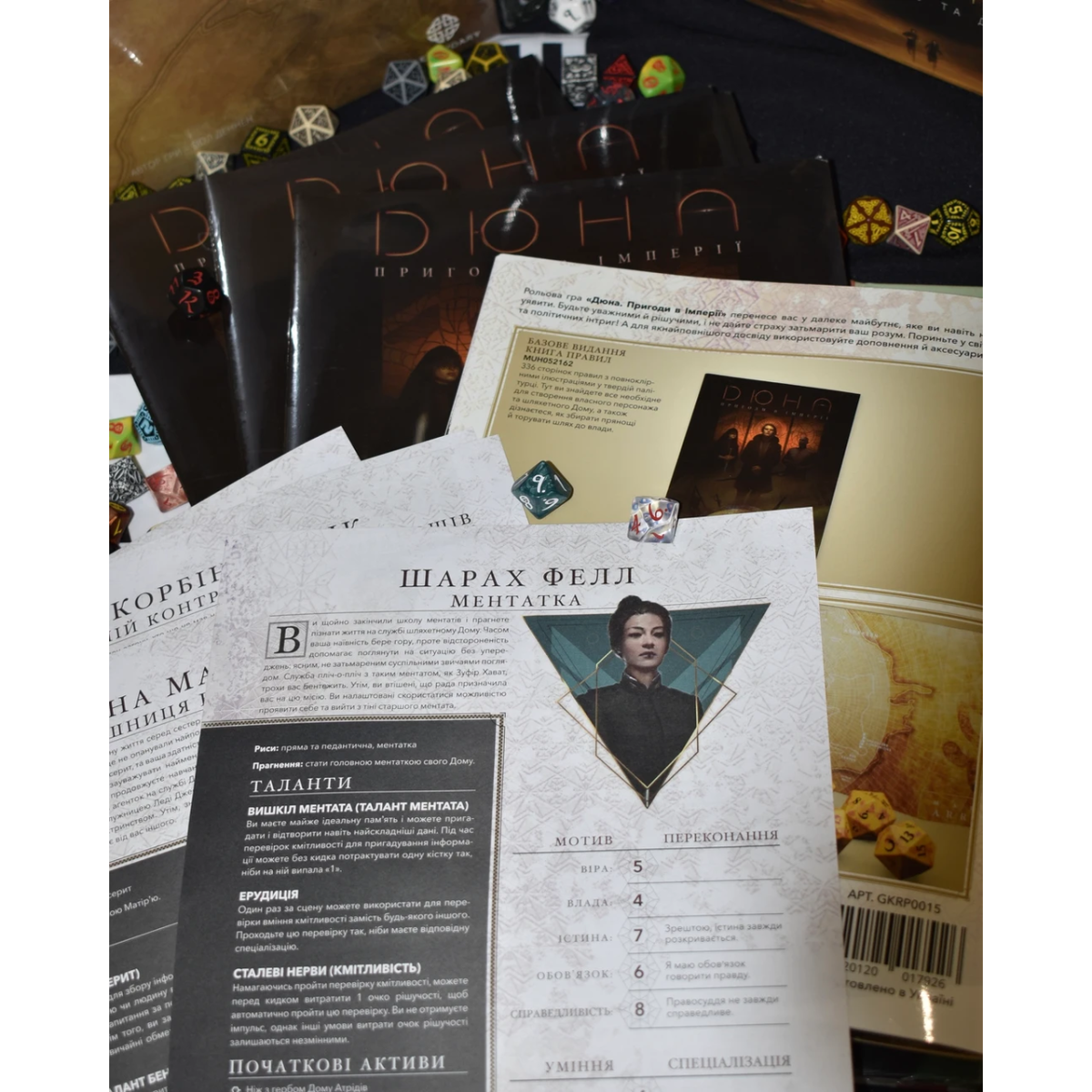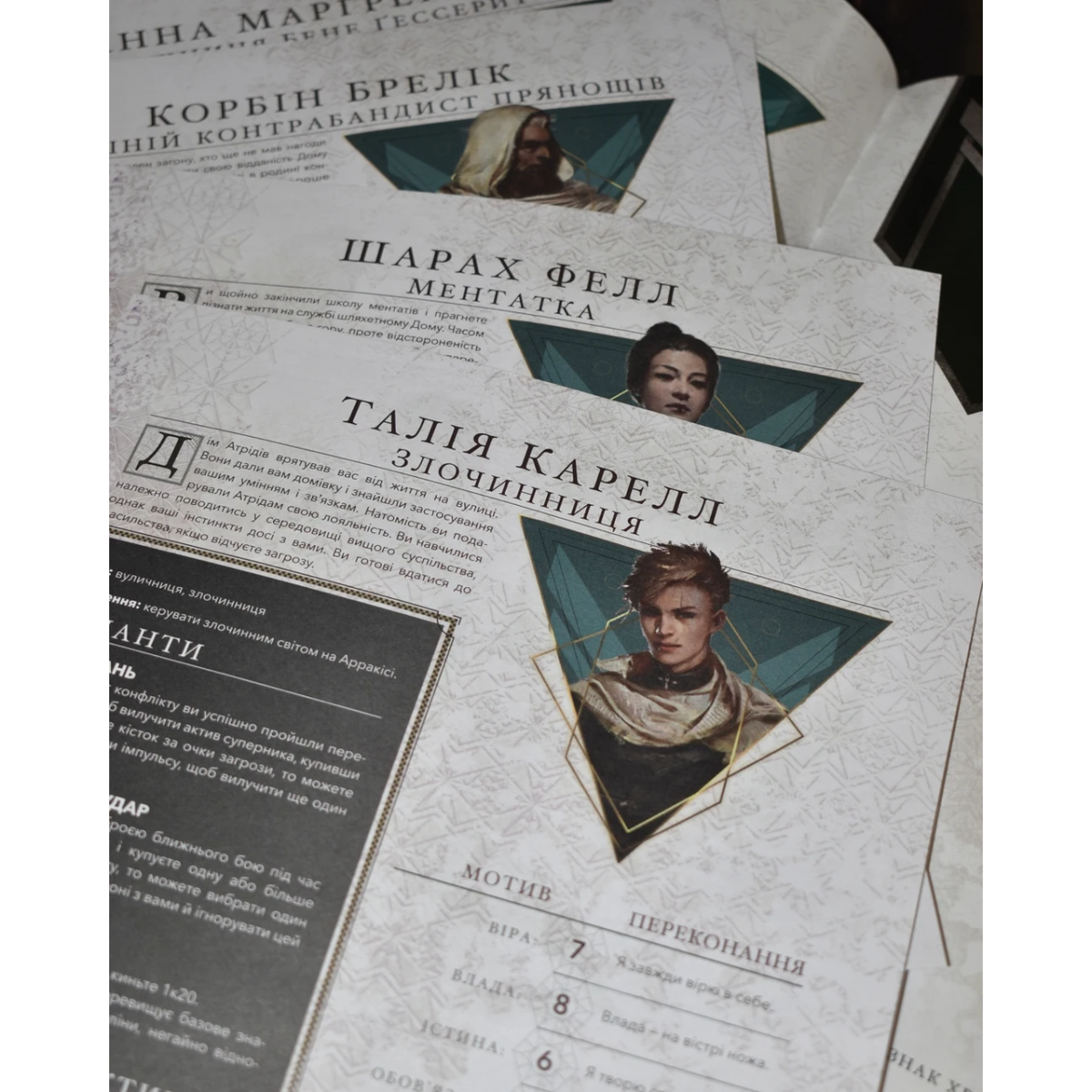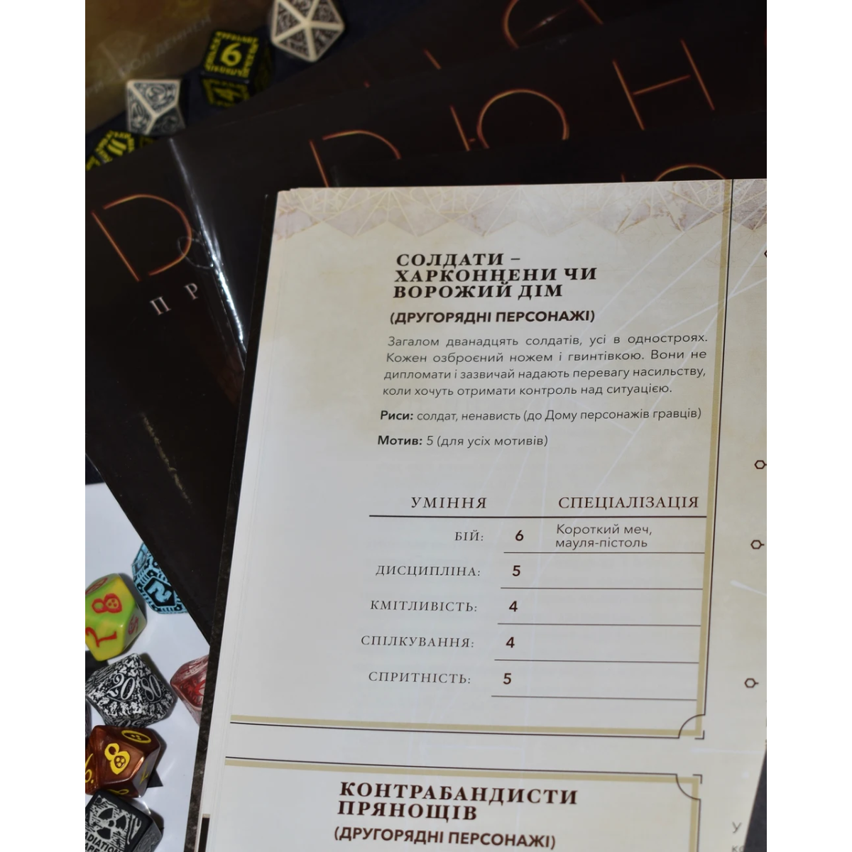 ???? Дюна. Пригоди в Імперії - Швидкий старт — це захоплююче введення в світ настільних рольових ігор за мотивами культової всесвіту Дюна. Якщо ви хочете поринути в атмосферу політичних інтриг, пустельних планет і епічних пригод, ця гра для вас! Це ідеальний старт для тих, хто лише починає свій шлях у світ рольових ігор, а також для шанувальників оригінальної серії книг і фільмів.
