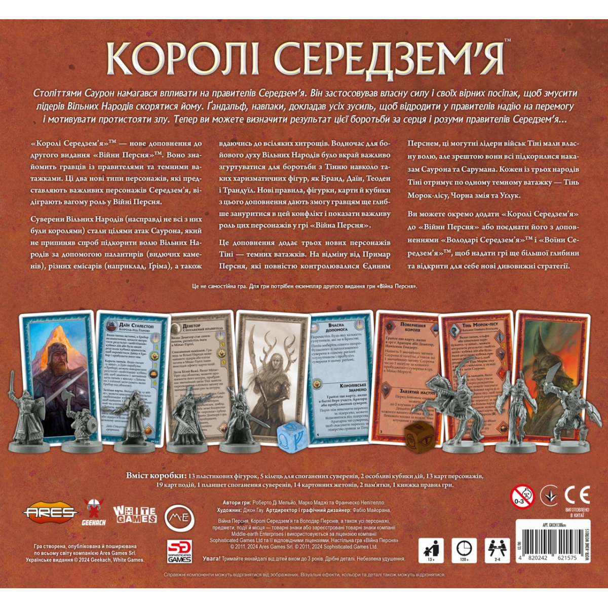 ???? Війна Персня. Королі Середзем’я – ОРИГІНАЛ! НА УКРАЇНСЬКІЙ! НОВА! Це доповнення до відомої настільної гри War of the Ring, яке відкриває перед вами нові можливості у боротьбі за Середзем’я! У цій грі вам доведеться взяти на себе роль одного з великих королів Середзем’я і вести свої війська в вирішальні битви. Від базової гри це доповнення відрізняється більшою увагою до стратегії і тактики, що робить кожен хід важливим і незамінним.