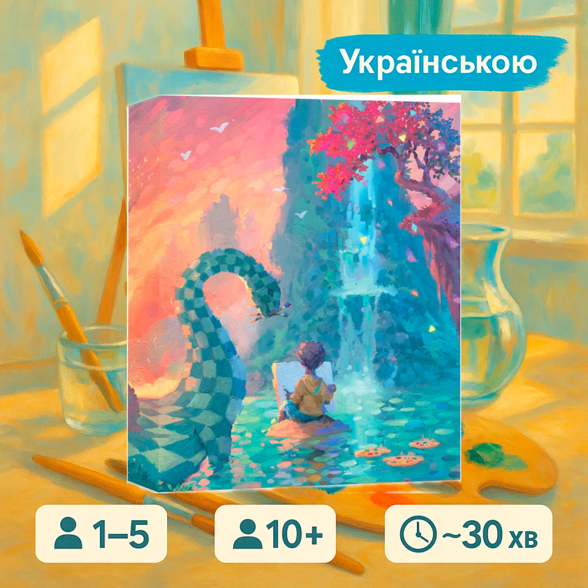 ???? Живопис. Відображення – це унікальна настільна гра, яка запрошує вас у захопливий світ мистецтва та творчості. У цій грі учасники стають художниками, що створюють власні шедеври, експериментуючи з палітрою кольорів, композицією та техніками.