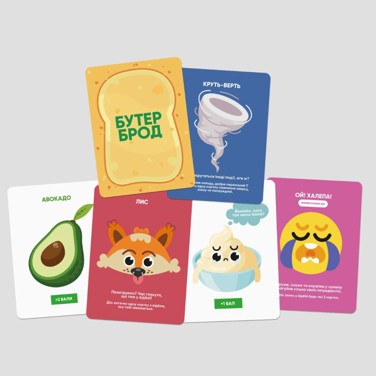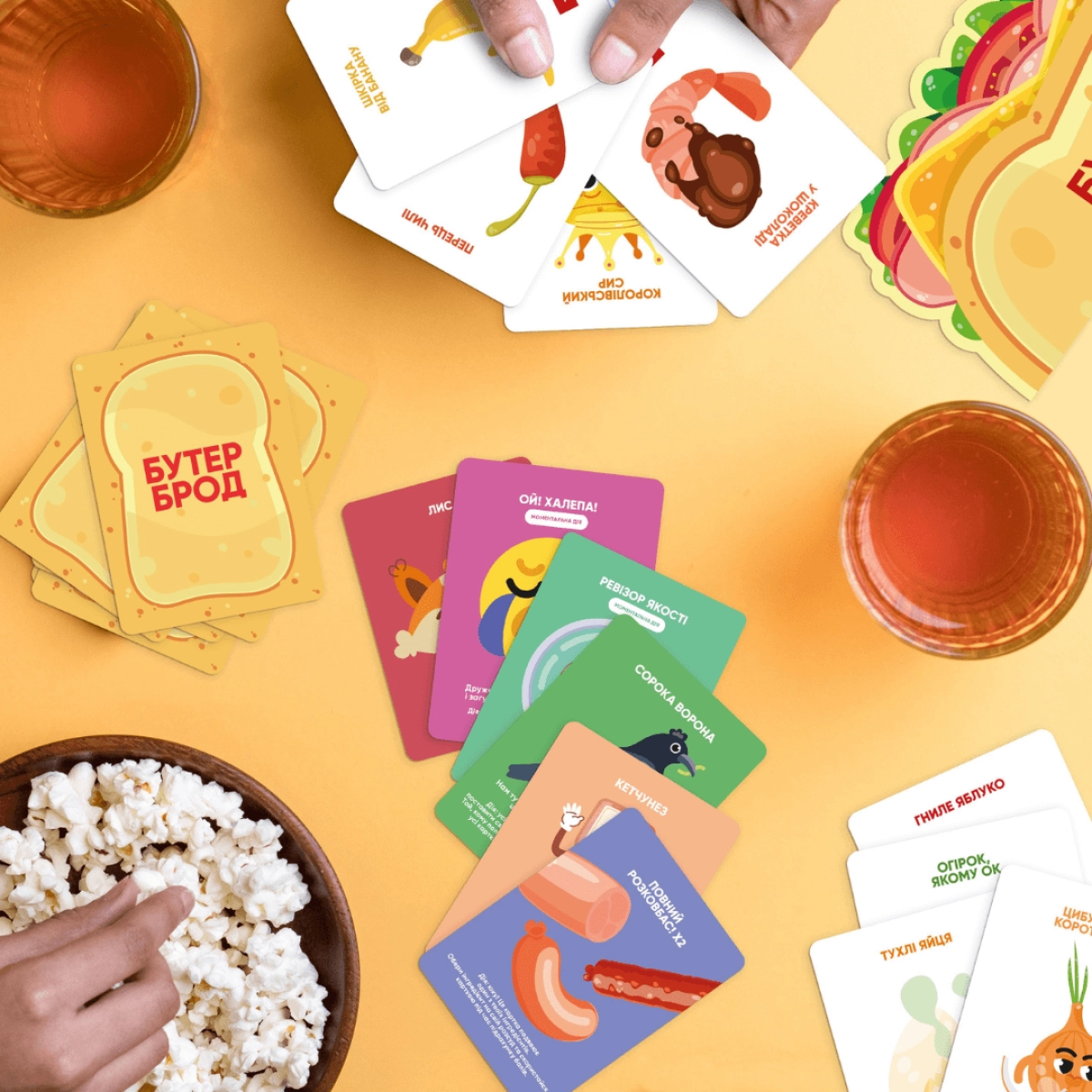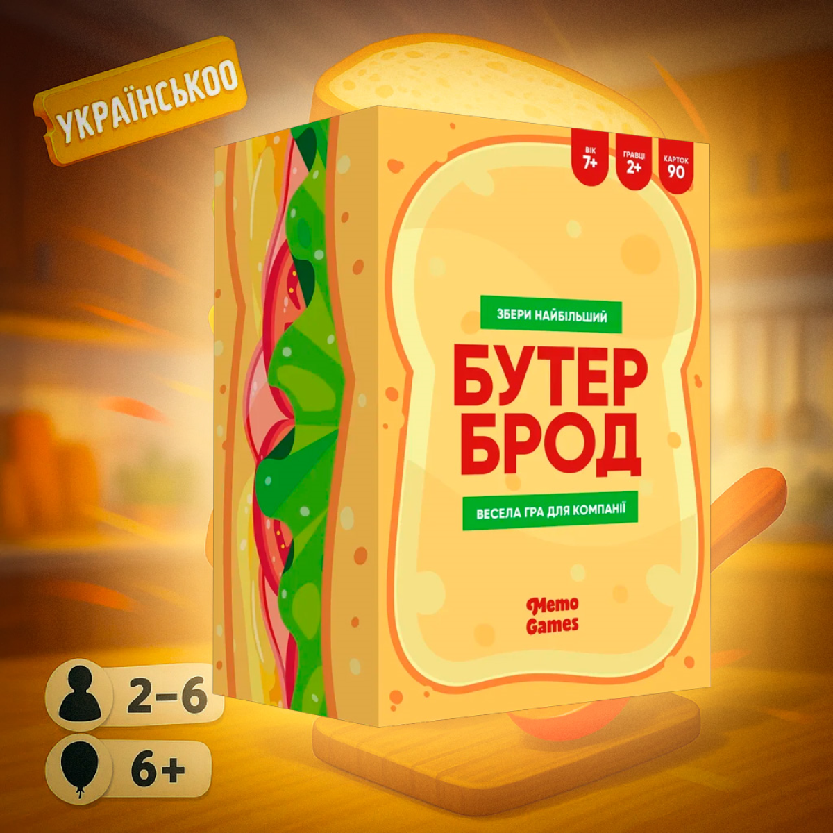 ???? Бутерброд – це весела та захоплива настільна гра, яка чудово підійде для всієї сім“ї! Вона перенесе вас у світ кулінарної творчості, де головним завданням буде створення найсмачнішого та найоригінальнішого бутерброда. Завдяки простим правилам та динамічному ігровому прfile:///C:/Users/arsit/Downloads/Telegram Desktop/image_2025-09-16_13-58-35.pngоцесу, гра стане прекрасним вибором для вечорів у колі друзів або рідних.