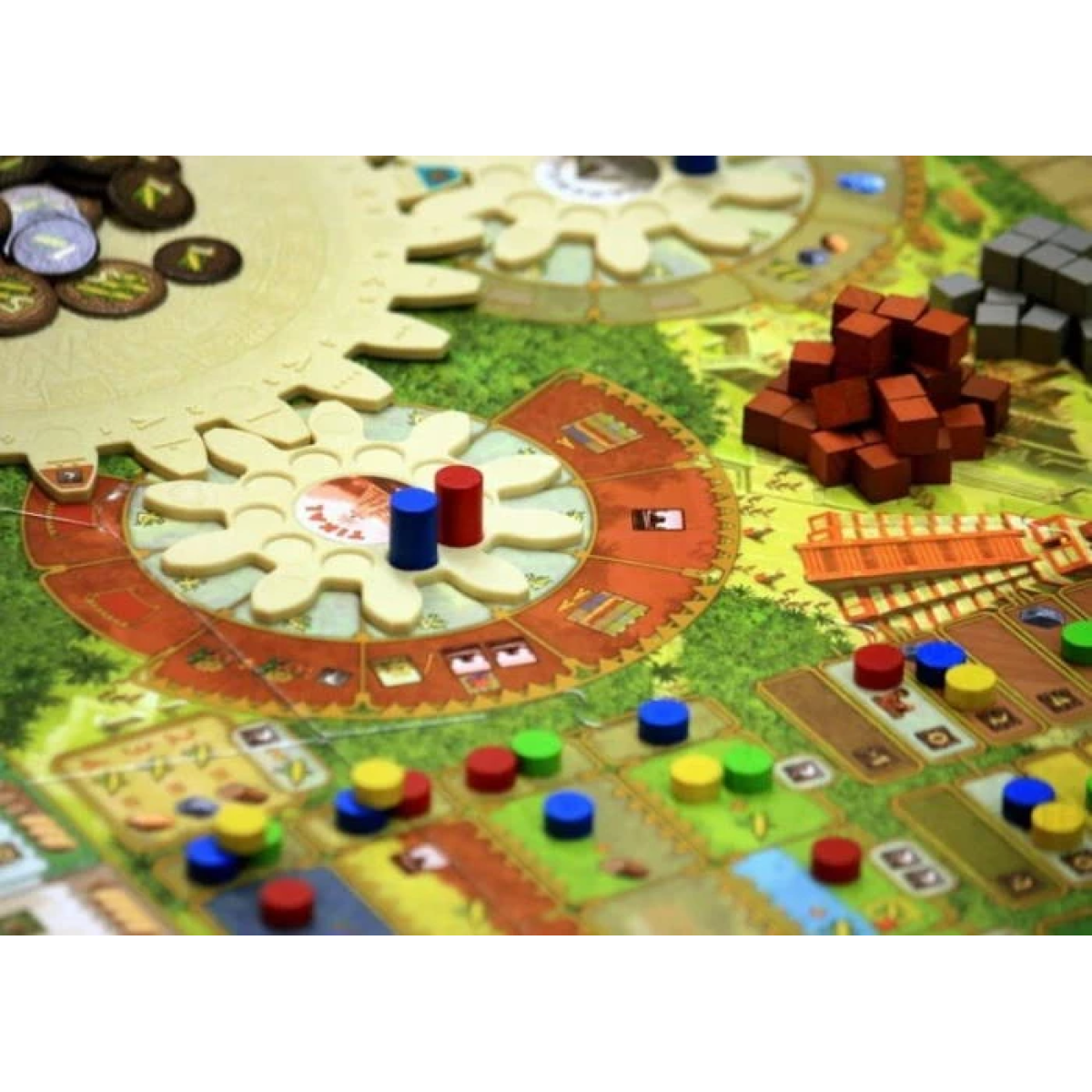 Механіка гри: унікальний механізм обертового календаря дозволяє гравцям здійснювати важливі стратегічні кроки. Кожен хід ви будете переміщувати своїх робітників по колу, щоб отримувати ресурси та виконувати дії, але будьте обережні — на кожному колі календаря ситуація змінюється.