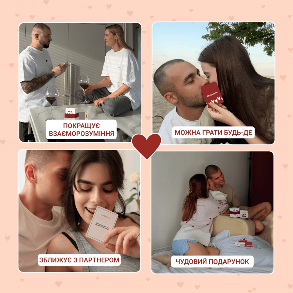 Глибокі та цікаві питання – гра пропонує інтимні та цікаві питання, що допомагають поринути в світ емоцій і відчуттів.