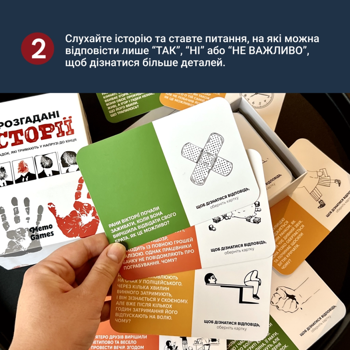 ???? “Нерозгадані історії“ – це захоплююча настільна гра, яка занурює вас у світ таємничих подій та нерозгаданих загадок. Ваша мета – розкрити всі таємниці, відгадати загадки і зібрати докази, щоб розкрити таємницю історії. Якщо ви любите інтриги і загадки, ця гра саме для вас!