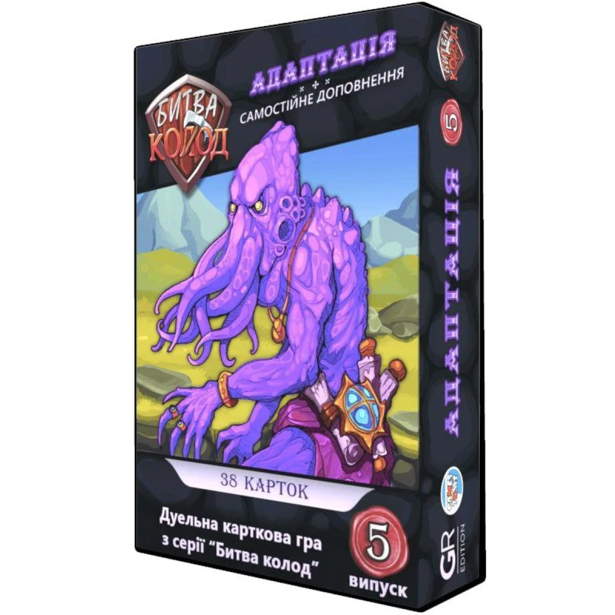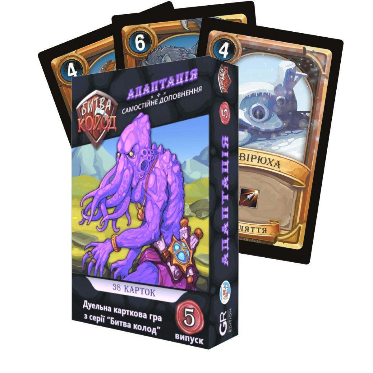 “Битва Колод №5 - Адаптація“ — це п“ята частина захоплюючої карткової гри, яка відзначається новими механіками адаптації та гнучкості стратегії. У цій грі гравці матимуть можливість змінювати свої тактики в залежності від змінюваних умов на полі бою. “Адаптація“ пропонує ще більше варіативності і дозволяє гравцям підлаштовувати свої колоди, щоб створювати унікальні ігрові ситуації та вигравати за рахунок гнучкості своїх рішень.