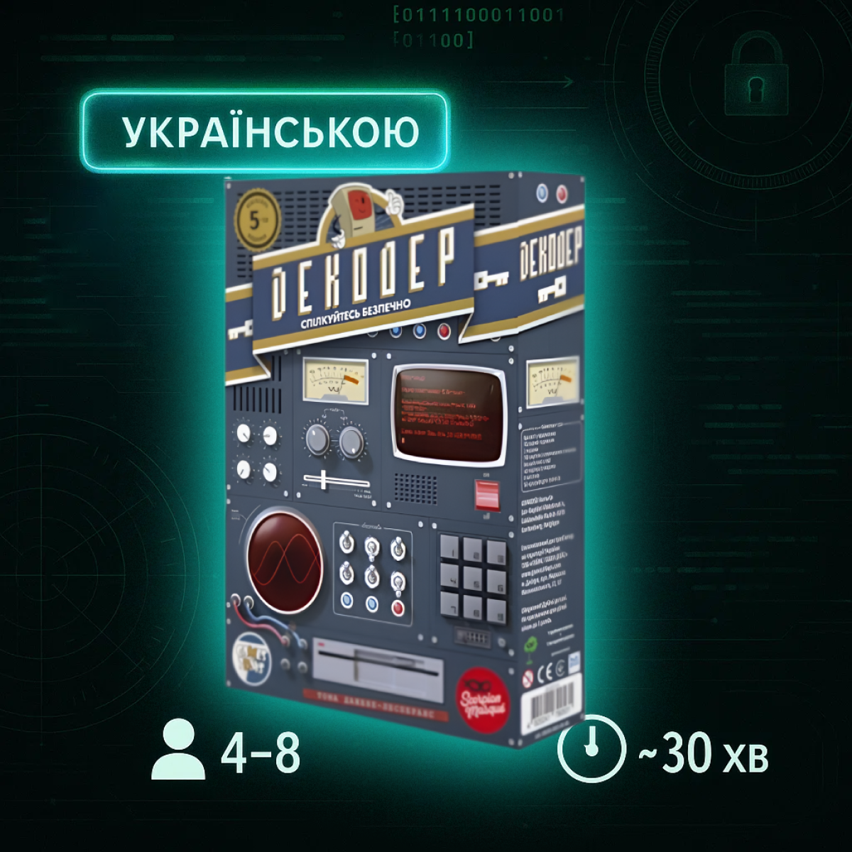 “Декодер. Ювілейне видання“ – це святкове видання популярної гри, яка поєднує інтелектуальні виклики з веселими моментами командної взаємодії. В ювілейному виданні гравців чекають нові картки, механіки та варіанти гри, що робить його ще більш захоплюючим для всіх фанатів гри. У цій грі вам доведеться працювати в команді, щоб розгадати секрети та коди, що стоять за загадковими картами. Хочете перевірити свої здатності до дешифрування і кмітливості? Тоді “Декодер. Ювілейне видання“ саме для вас!