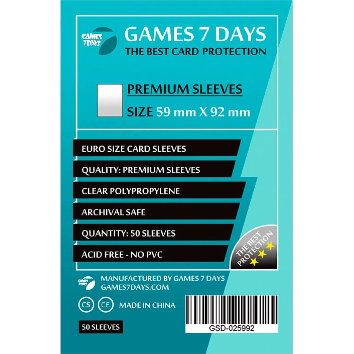 Преміум протектори Games7Days (59х92 мм, Euro) - 50 шт.