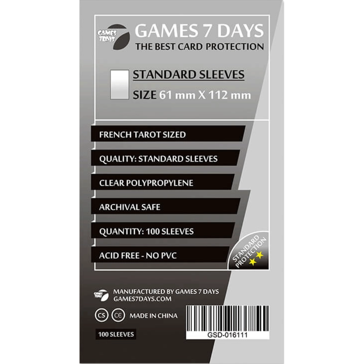 Протектори Games7Days (61х112 мм, French Tarot) - 100 шт.
