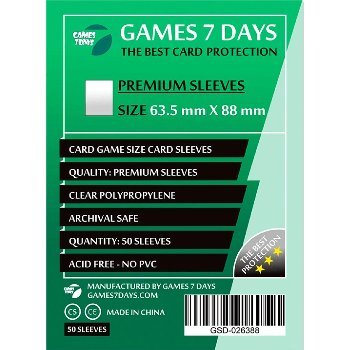 Преміум протектори Games7Days (63.5х88 мм, Card Game) - 50 шт.