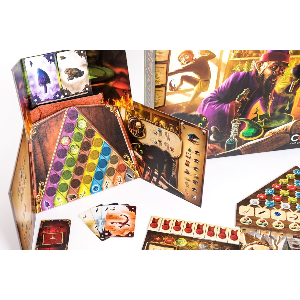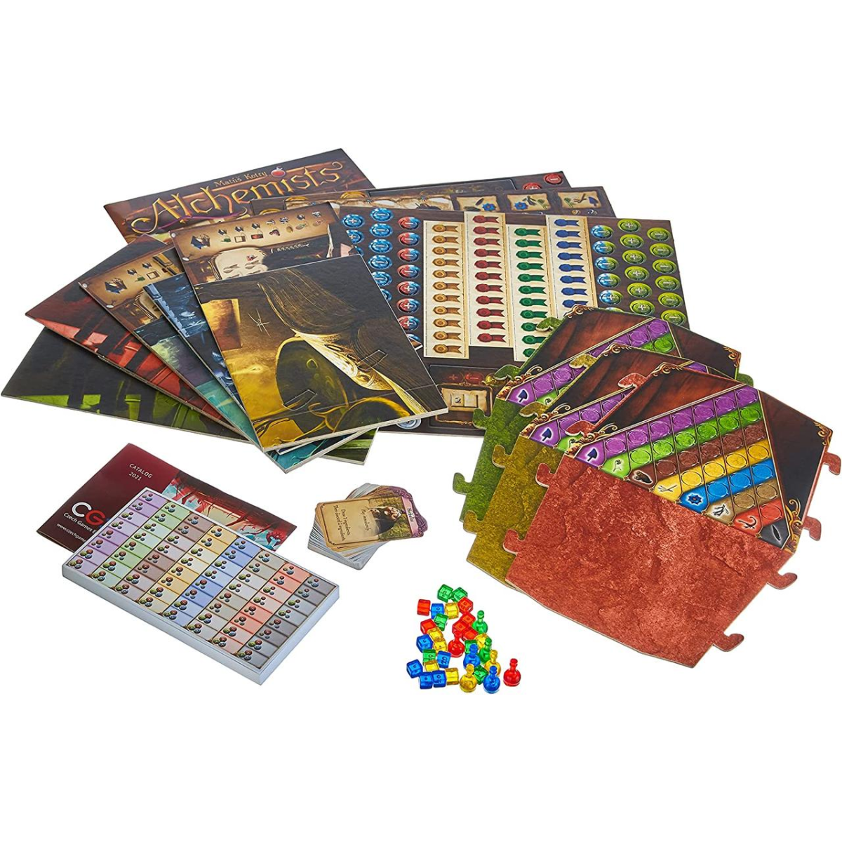 “Алхимики“ — стратегічна гра, у якій ризик і дедукція займають однаково важливе місце. Чи варто продовжувати експерименти, щоб зібрати більше доказів, чи краще опублікувати неперевірену теорію, але отримати більше очок? Чилатити гроші за розвиток чужої теорії про жаби, чи підкопити та купити артефакт? Чи точно потрібно продавати це зілля здоровому варвару з дворучним сокирою, якщо ви навіть не здогадуєтеся, що тут намішано? Ваші рішення визначитьте, чи станете ви найбільшим алхіміком у світі.
