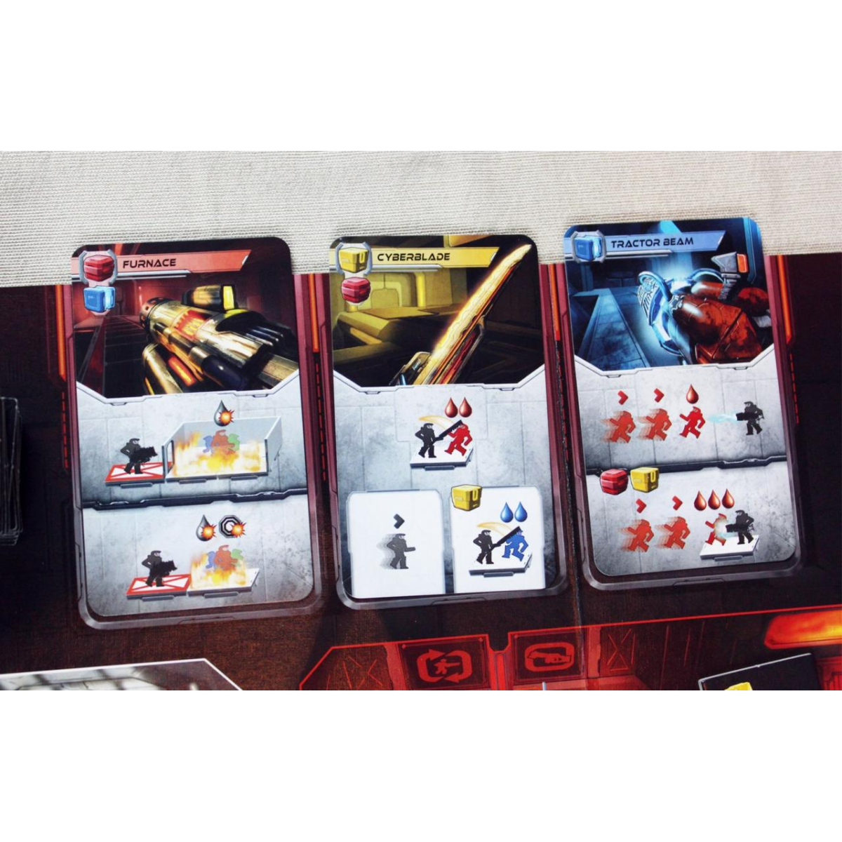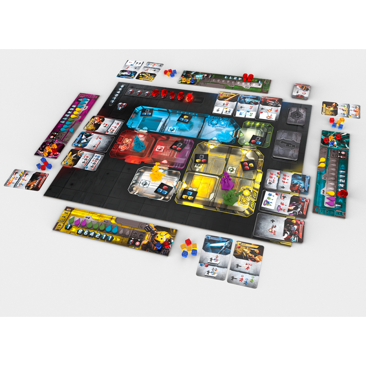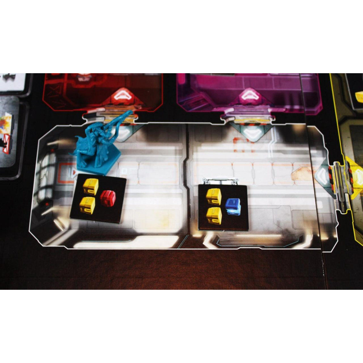 Збираємо арену з двох планшетів. Арена являє собою кілька кімнат, пофарбованих у різні кольори, з“єднаних між собою. На арені визначені місця, у яких з“являються персонажі (мініатюри) на початку гри та після вбивства, зброя та боєприпаси. Поки все знайоме?