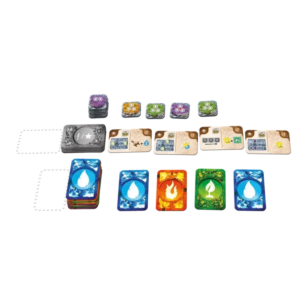 Зіграти карту стихій. Кожна з цих карт має певний ефект, що дасть учасникам можливість прибрати жетони забруднення свого планшета, отримати й розташувати плитку лісу, перемістити вершників вітру, отримати жетони води або звести селище, витративши певну кількість води. Кожна карта стихій також має і вимоги: деякі вимагають мати певну кількість карт стихій на руці, інші потребують підрахунку усіх карт стихій на стійках запасу інших гравців тощо.