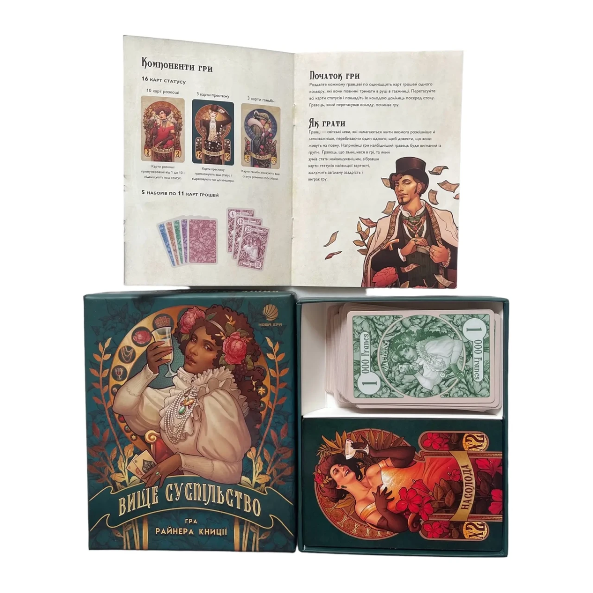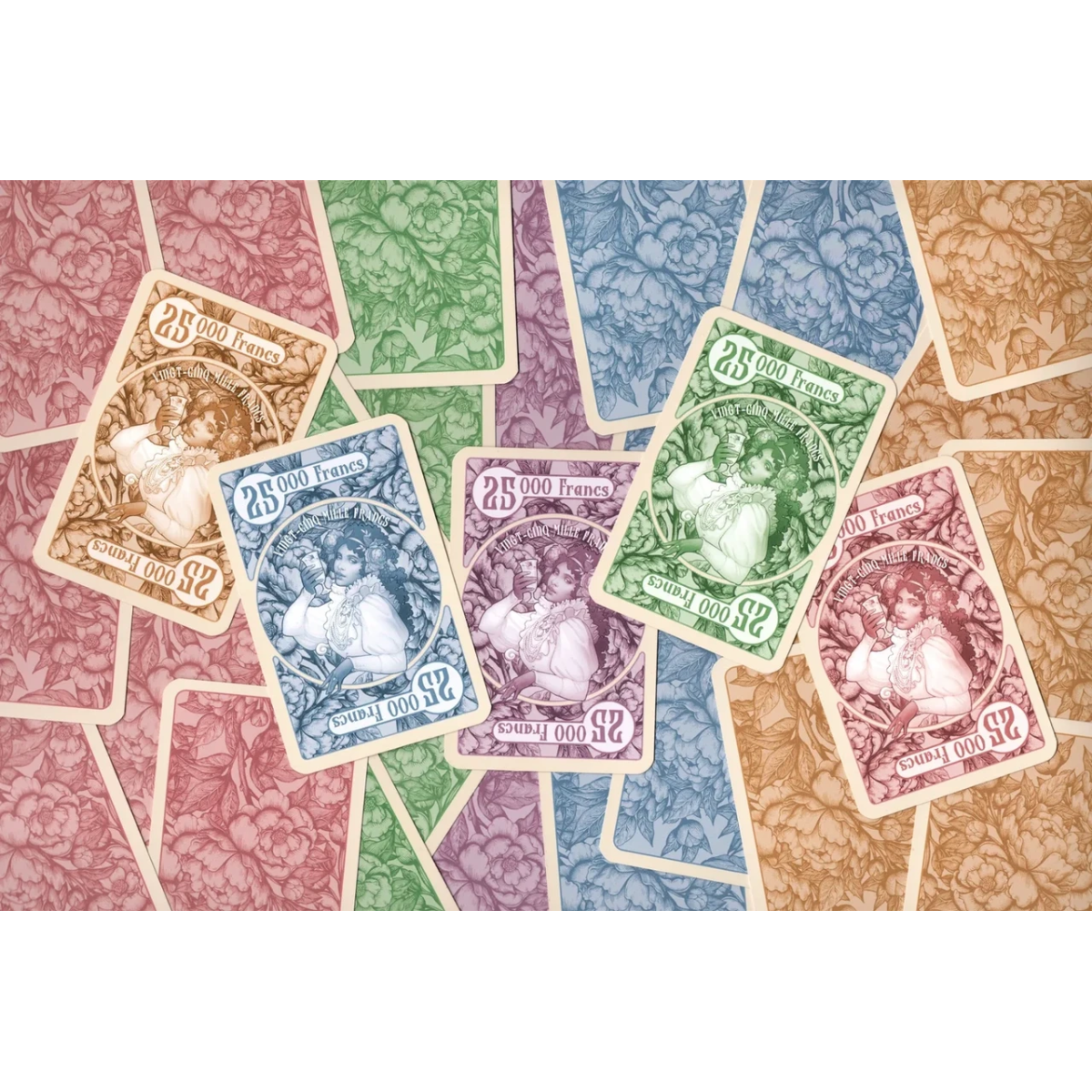 Гравці отримують карти грошей своїх кольорів. Карти розкоші, визнання й невдач замішуються в загальну колоду.