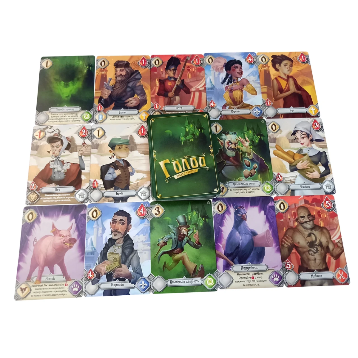 122 картки полювання (80 людей, 22 фамільяри, 20 сил)
