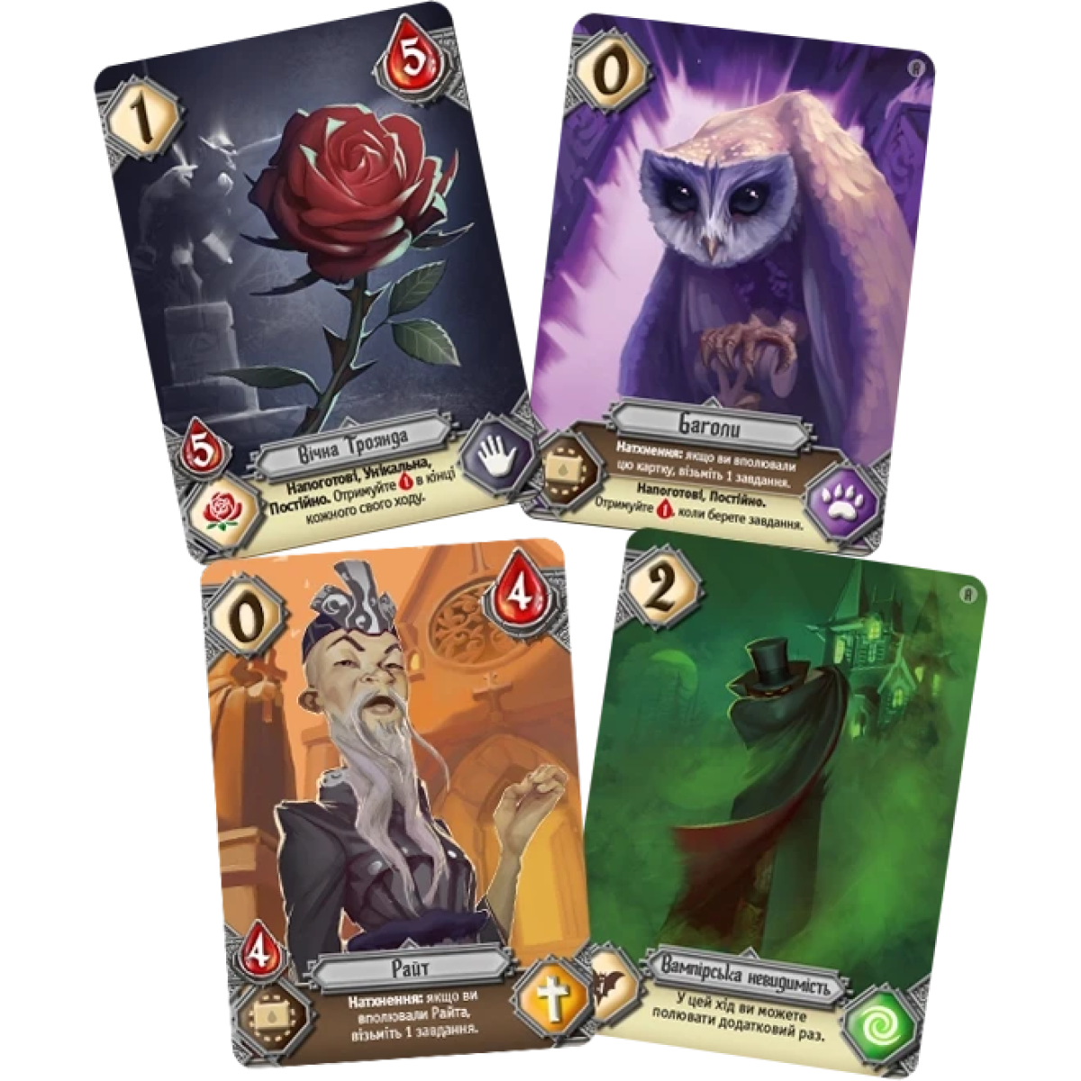 Українська локалізація стратегічних перегонів про нічні пригоди вампірів. Мета гри для кожного вампіра - знайти троянду та повернутися до замку до того, як зійде сонце, на шляху заробляючи переможні бали за секретні місії та вдале полювання на людей.