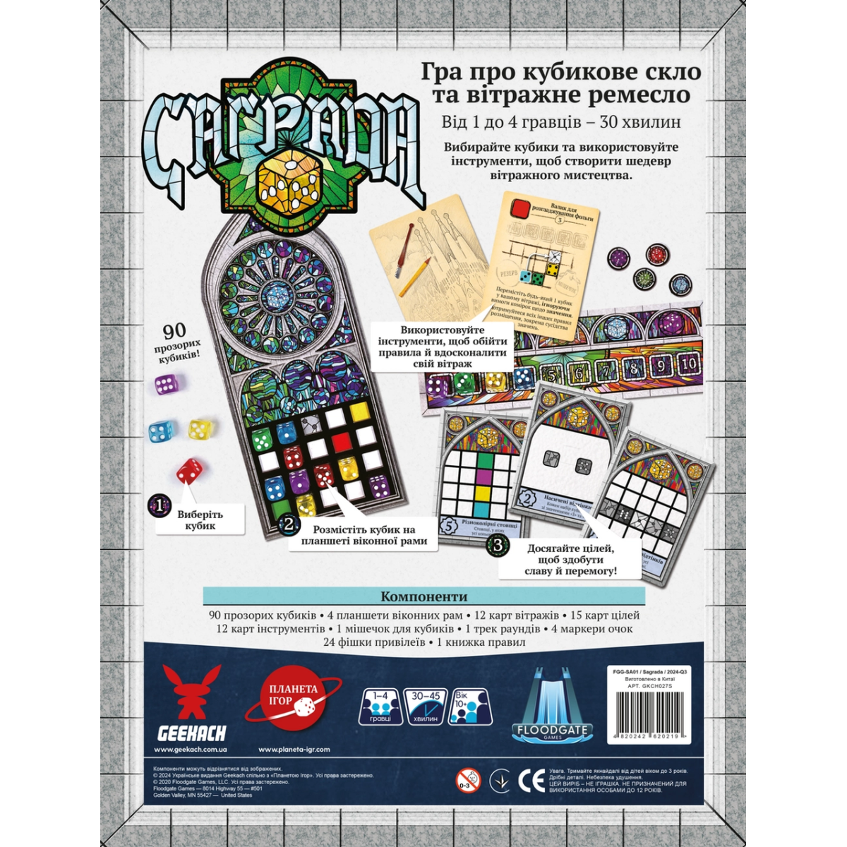 Саґрада чудово підійде для сімейних вечорів, дружніх посиденьок і навіть змагальної гри, адже має високу реіграбельність і захопливий процес.