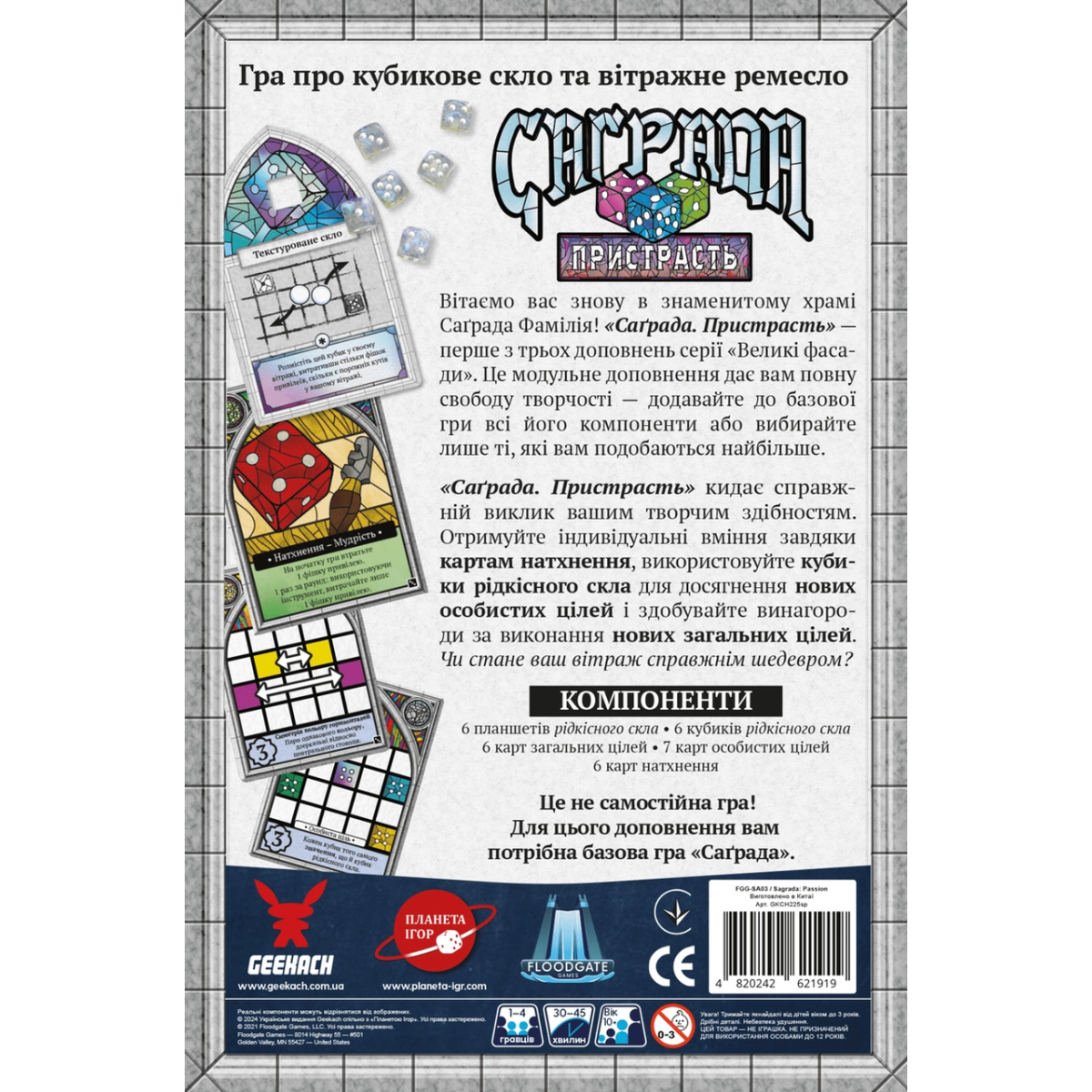 ???? Саґрада: Пристрасть – це доповнення до всесвітньо відомої настільної гри Саґрада, яке додає ще більше глибини, стратегічних рішень і можливостей для створення витончених вітражів. Тепер вам доведеться проявити не тільки майстерність, а й справжню пристрасть до мистецтва!