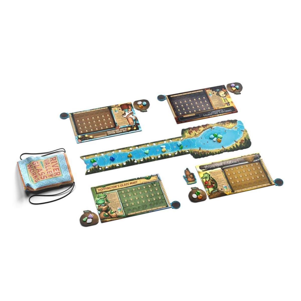 ???? Річкова Долина – це захоплива стратегічна настільна гра, що перенесе вас у мальовничий світ ремісників, які створюють витончені скляні вироби. Ви візьмете на себе роль майстра-склодува, який прагне досягти визнання, керуючи виробництвом та доставкою своїх виробів уздовж річки.