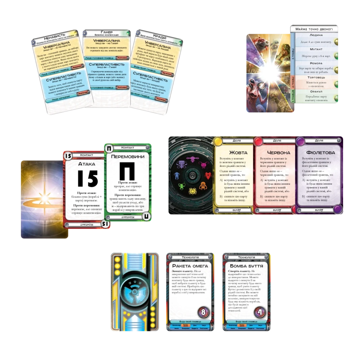 Захоплювати планети та колонізувати їх будете за допомогою карт: всі стартуватимуть із набором планет і флотом кораблів. Хід проходить по черзі, під час нього учасники отримають карти технологій і відкриють карту долі, яка вирішить, до кого з опонентів полетять ваші кораблі. Вам потрібно буде вибрати планету та кількість кораблів для захоплення. Тим часом, решта учасників для себе мають вирішити, чи братимуть участь у бою й на чиєму боці. За допомогу під час захисту можна отримати нові карти, а якщо допомогли «агресоро», можна утворити колонію на захопленій планеті. Учасники, що відчинили п“ять таких колоній, заявляються переможцем.