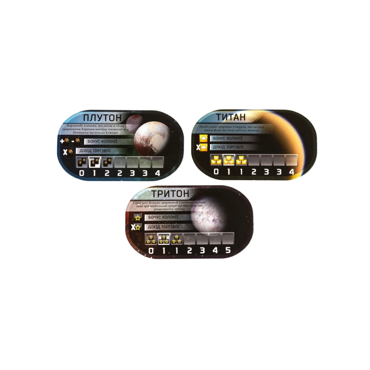 Вибираючи основу колонії, гравець розміщує кубик на супутнику. Кожен супутник Марса може містити три колонії. Таким чином, у майбутньому збільшується потенціал торгівлі з цим супутником.