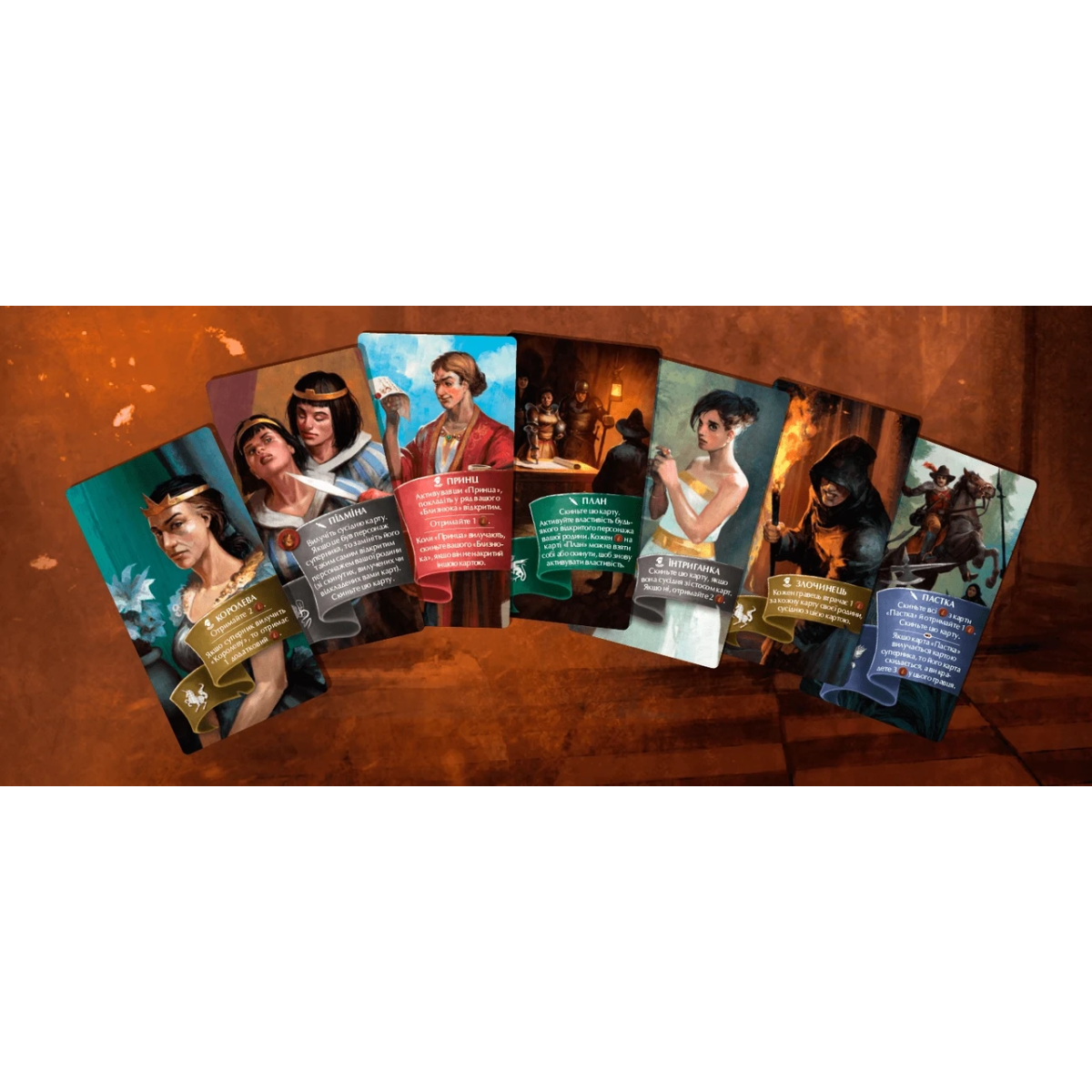 Близнець. Перед початком гри відкладається вбік. Додається в ряд тільки за допомогою «Принця». Приносить 1 очко впливу. Коли видаляється, також потрібно скинути карту «Принця».