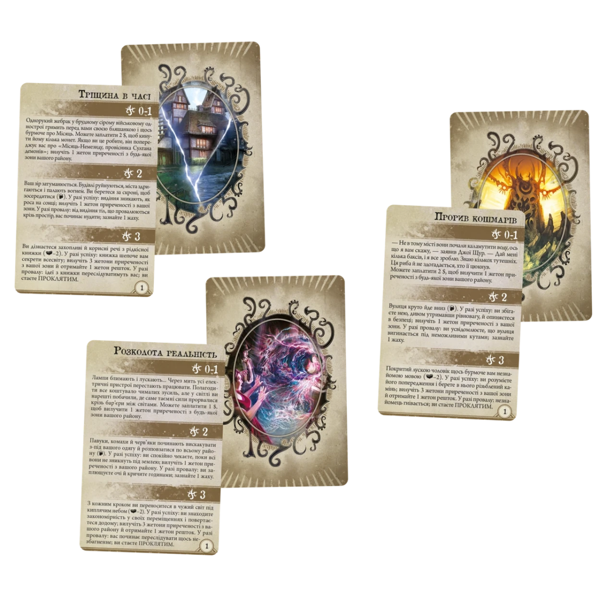 - Переміщення. Дослідник може переміститися на відстань до двох зон (або далі, доплативши кілька доларів). Якщо дослідник опиняється в зоні з відновленим монстром, той надходить із ним у бій. Карта монстра лягає біля листа дослідника.