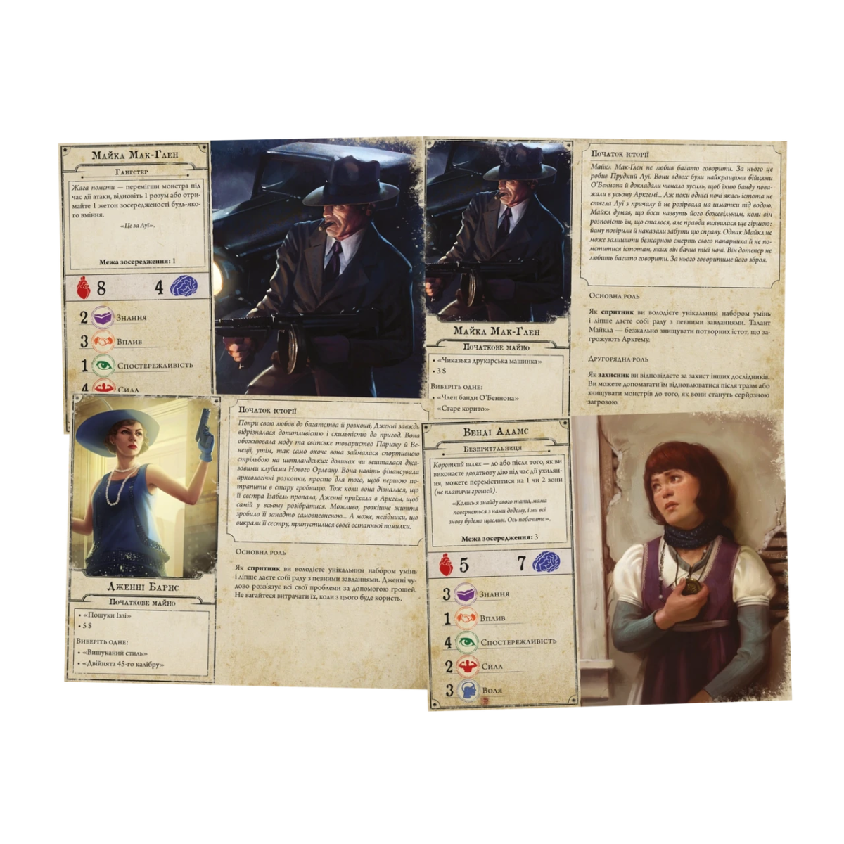 - Вивчення. Пройшовши перевірку спостережливості, гравець розміщує на листі сценарію за своїм доказом за кожен викинутий успіх.