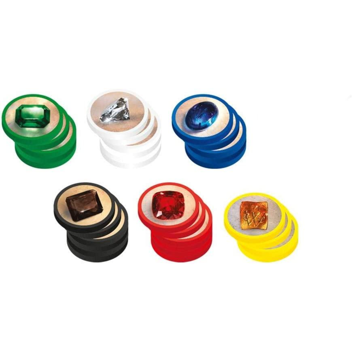 Окремо одна від одної, перемішайте три колоди розвитку коштовного каміння. З кожної колоди відкрийте по чотири карти в ряд. Отже, у вас вийде 3 ряди по 4 карты. Над мапами відкрийте карткидові. Випадково виберіть і відкрийте стільки карт 59, скільки гравців за столом + 1 карта. Жетони з коштовністю розсортуйте по стопочках і розмістіть на столі в будь-якому зручному місці.