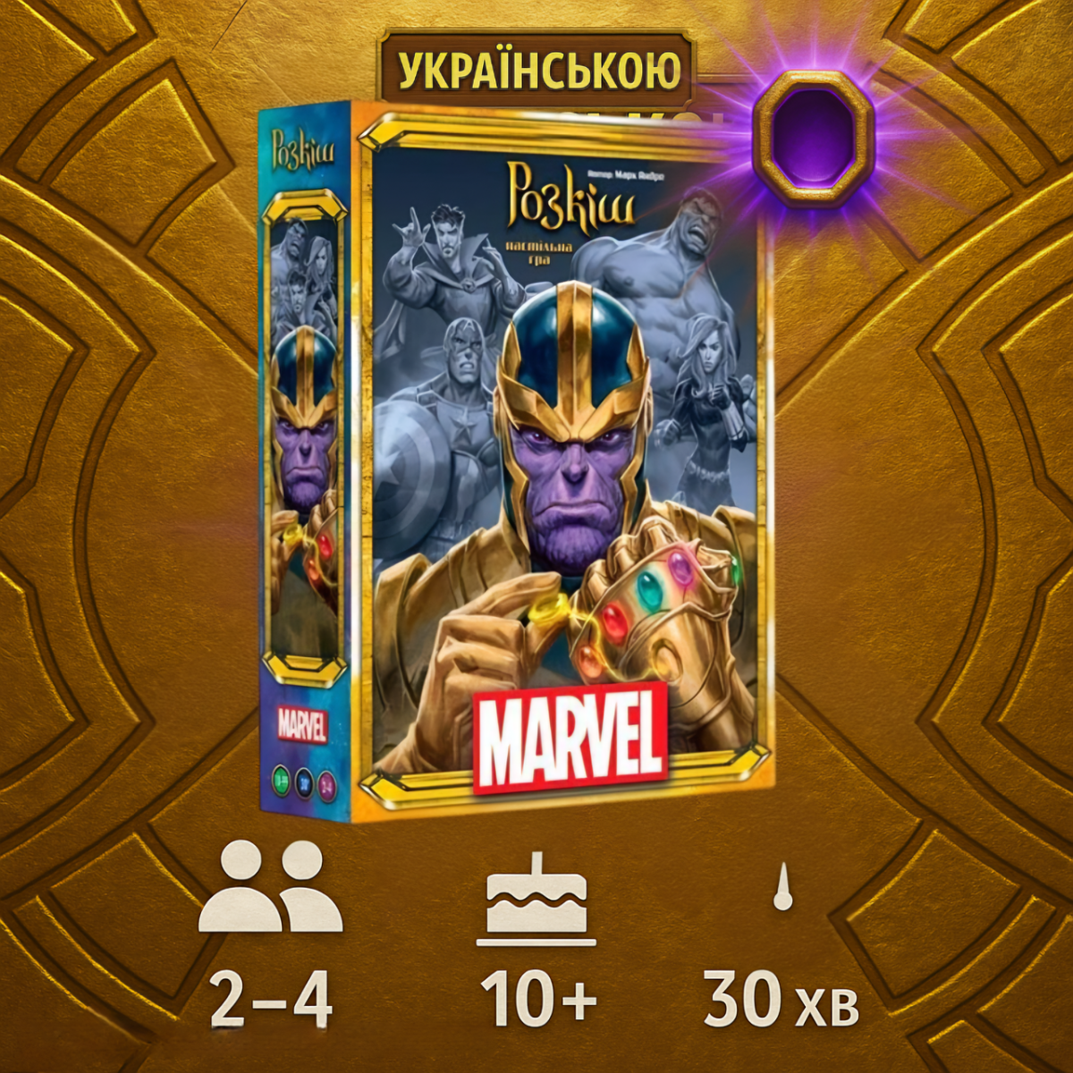 Перед вами оновлена та переосмислена версія витонченої гри про ювелірів епохи Відродження. Тепер вам буде необхідно накопичувати есенції каменів нескінченності, щоб привертати до своєї команди могутніх героїв і безжальних лиходіїв і захоплювати потужні локації.