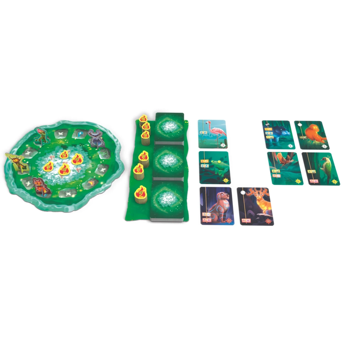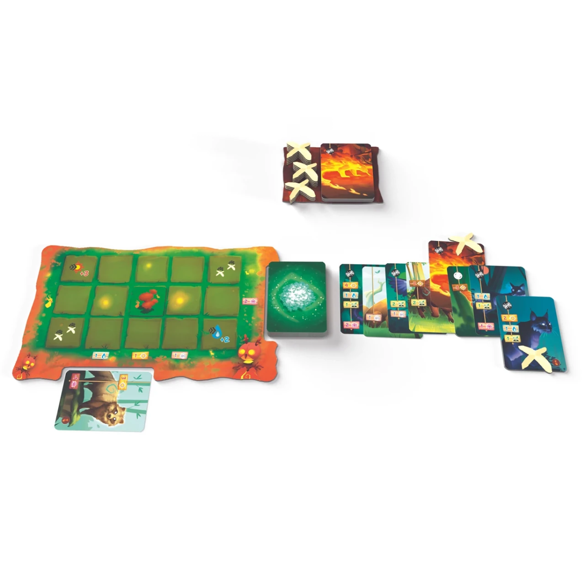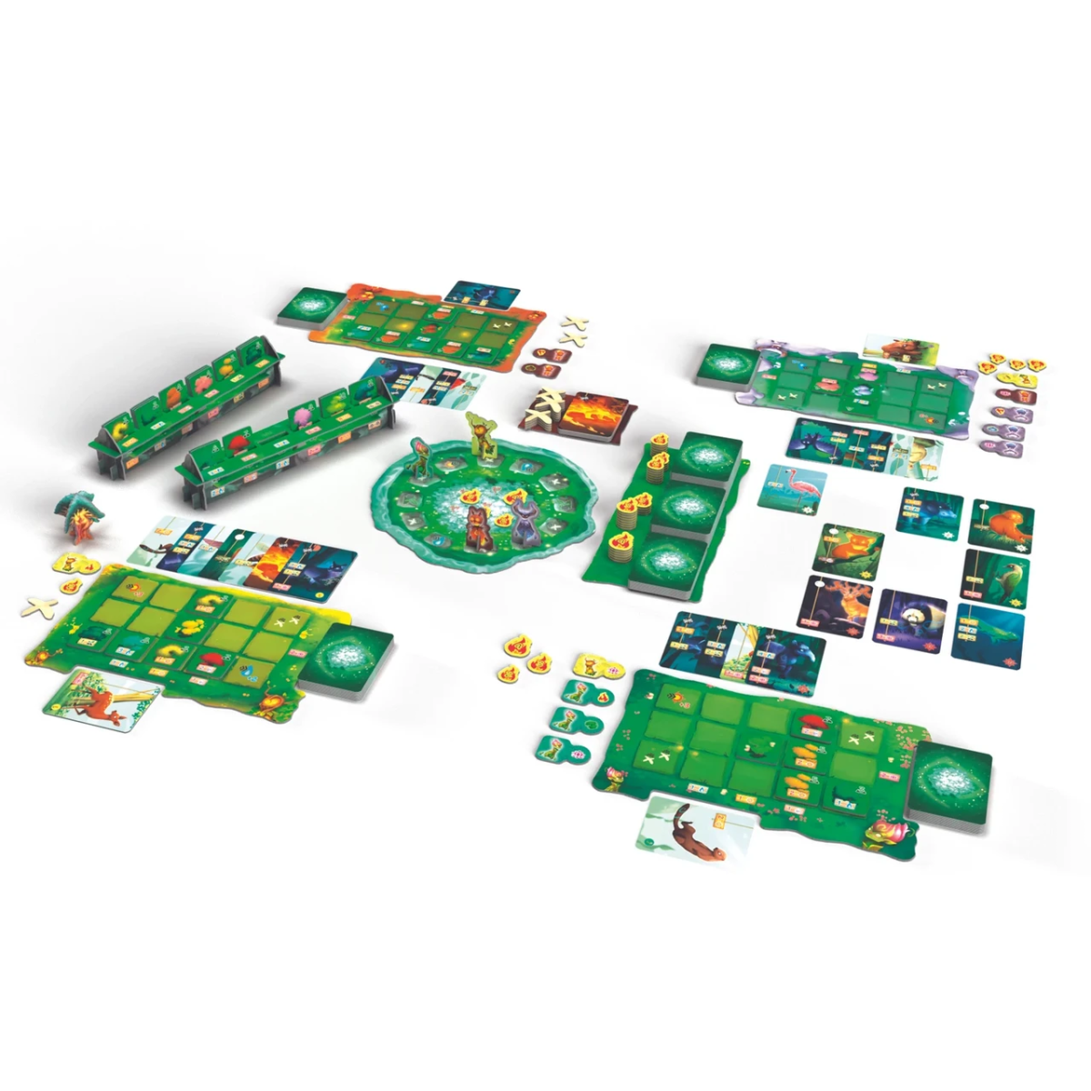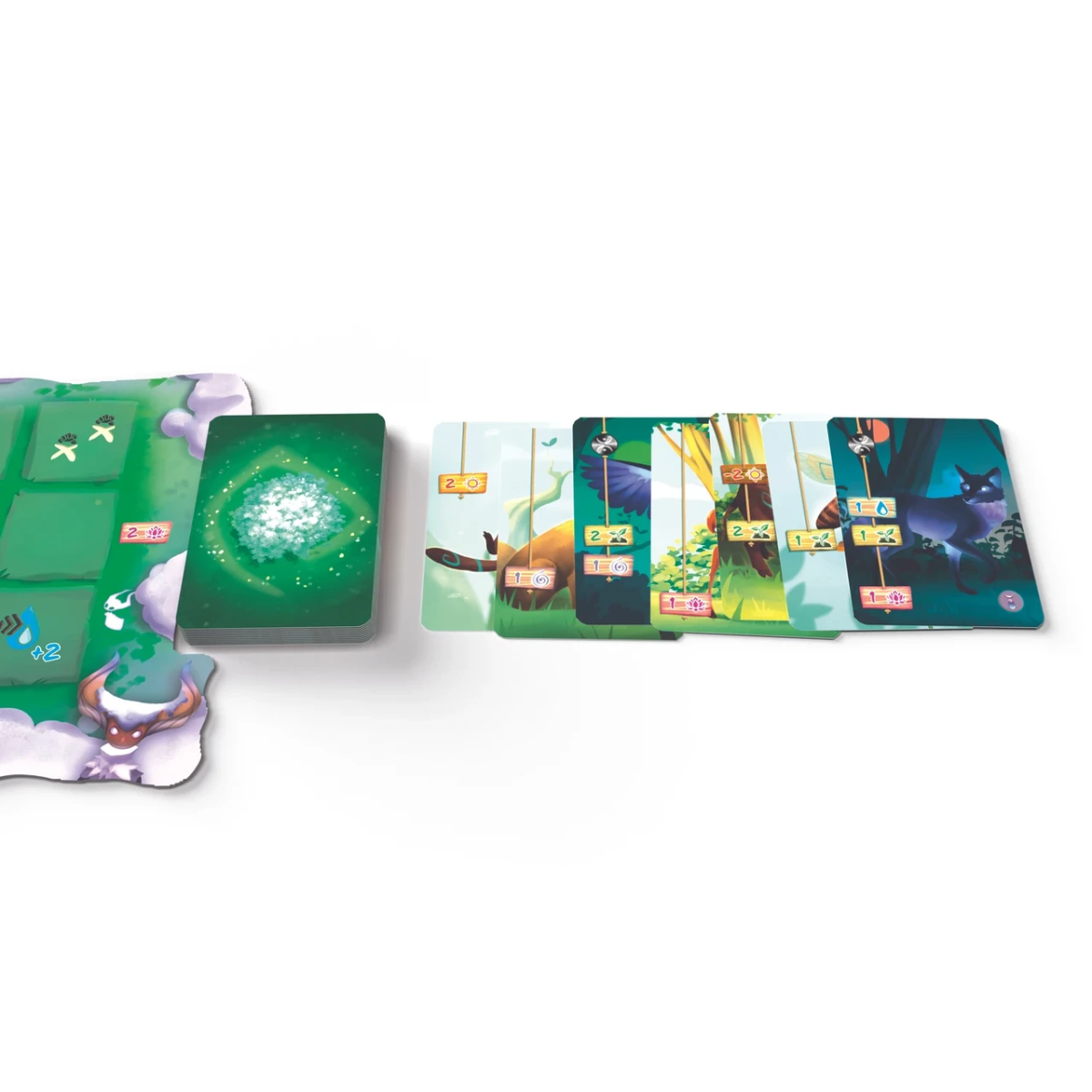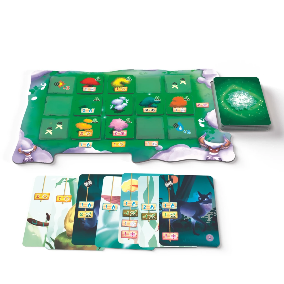 На початку партії всі учасники отримують по власному планшету та стартовій колоді карт. На столі розміщується ігрове поле, що є Священним деревом в оточенні Лісу, підставка з плитками дерев, а також первинний «ринок» з 16 доступними для покупки картами істот. Маркери гравців встановлюються на коло Духів.