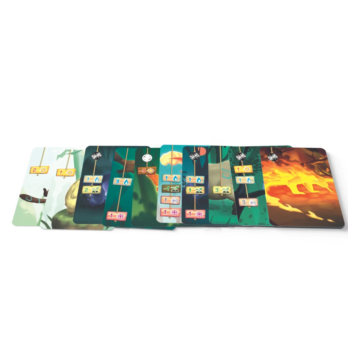 по 14 карток стартових тварин-захисників на кожного з чотирьох духів природи