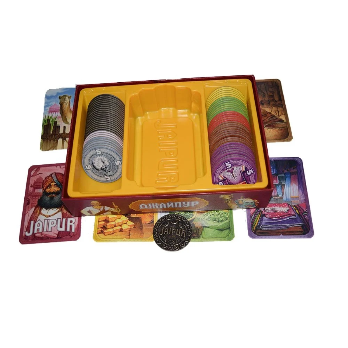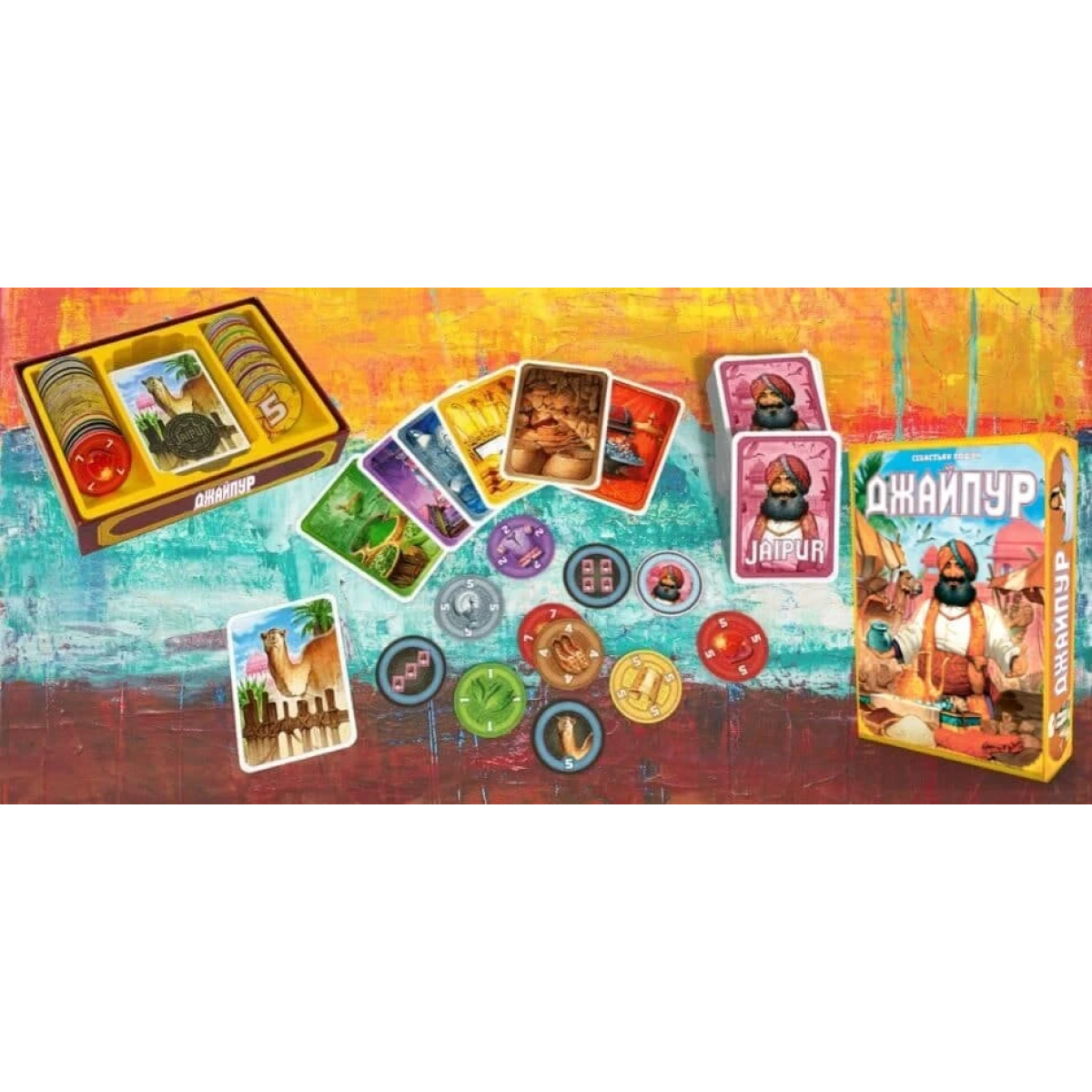 Джайпур (Jaipur, Українською) — знаменита дуельна гра, яка вже стала класикою. Випущена 2009 року, гра цілих п“ять років збирала нагороди на різних престижних конкурсах. «Джайпур» завоював неймовірну популярність серед шанувальників швидких настільних ігор і донині не знає рівних у своєму жанрі.