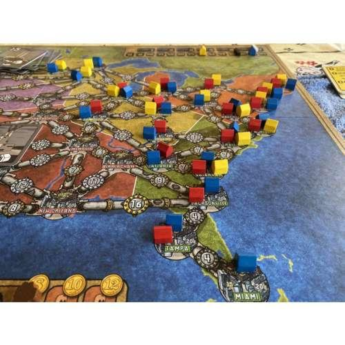Будівництво. У зворотному порядку ходу гравці розширюють свої енергомережі, під“єднуючи нові міста. У новому місті, пов“язаному з містами, що входять до мережі, розміщується будиночок. Вартість з“єднання вказується на шляху. Вартість під“єднання вказується в наступній вільній комірці міста, де розміщується будиночок. У місті можуть бути будиночки трьох гравців, перший будується за 10, другий за 15, а третій — за 20 електро.