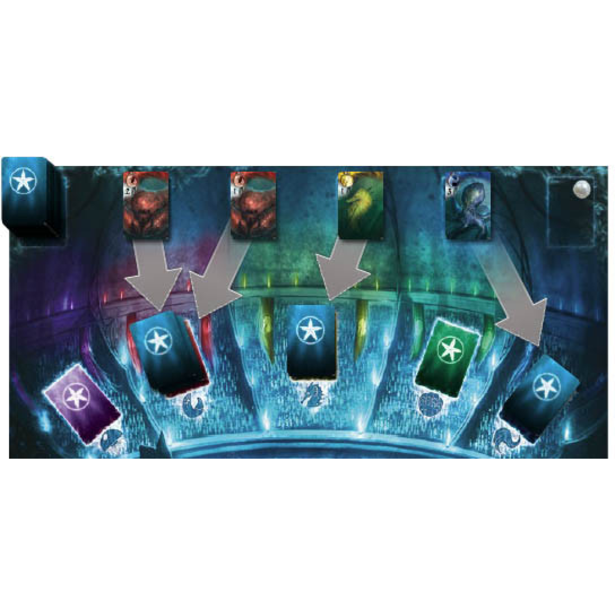На треку дослідження, що залишилися, карти союзників вирушають до Ради, займаючи місця відповідно до свого кольору. Згодом будь-який гравець може забрати з Ради всі карти одного кольору в руку.