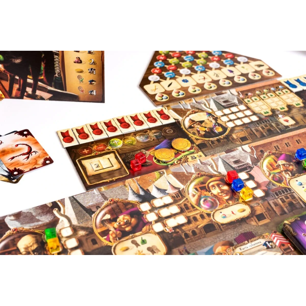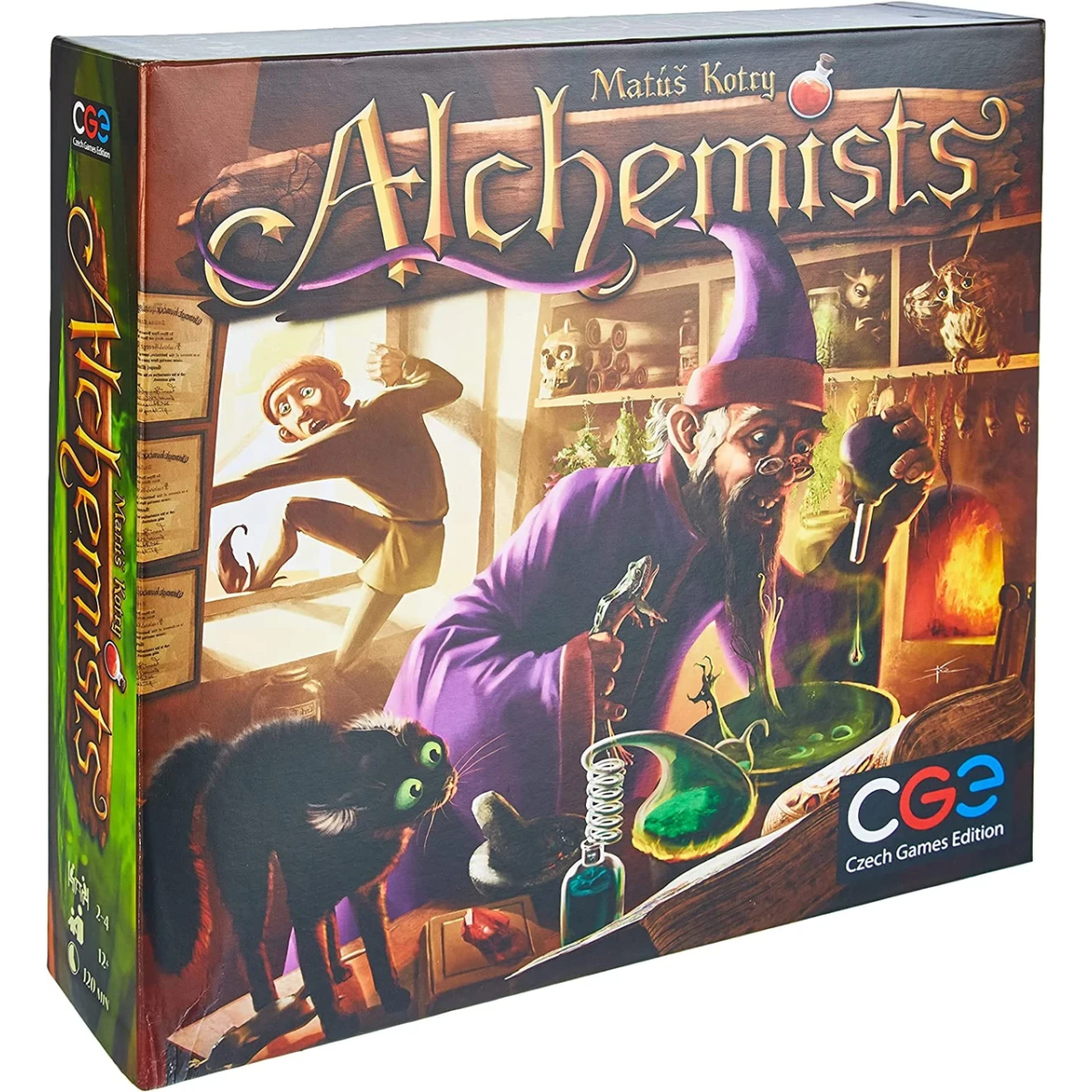 Фентезійне детективне євро з механікою розміщення робочих («worker placement»). У настільній грі «Alchemists» учасники стануть вченими-алхіміками та займуть приготування магічних зілля, експериментами над студентами, преміями теорії, а також перевірянням інших. За результати змішування інгредієнтів відповідає або безплатний електронний застосунок, або гравець-ведучий.