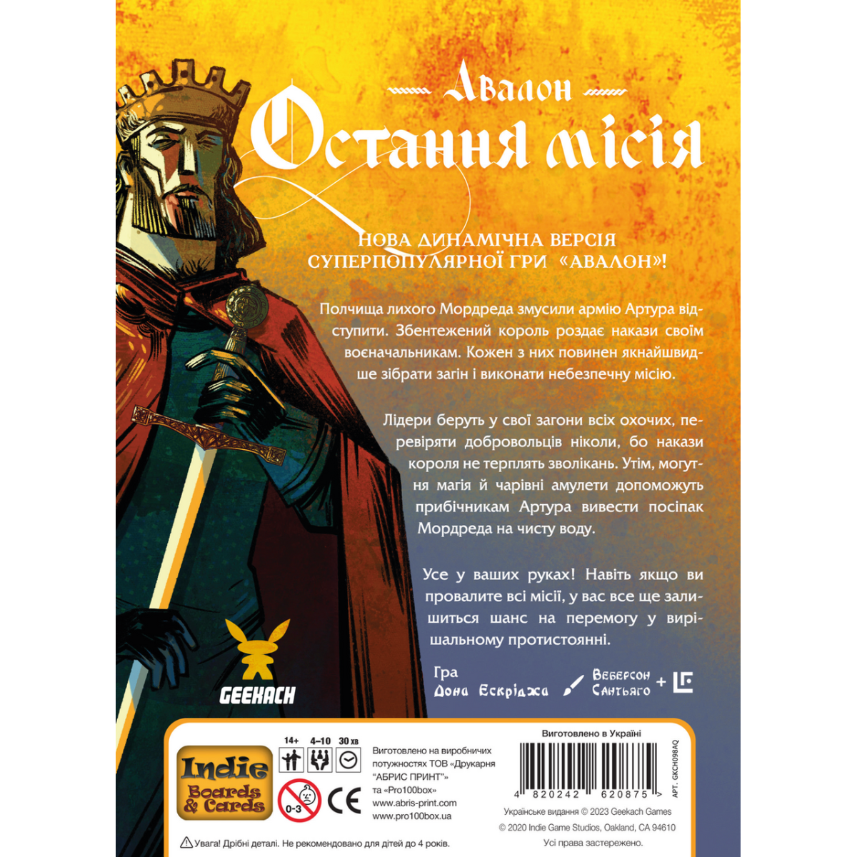 Остання місія — гра на дедукцію й блеф із таємними ролями. Таки ж, Мафія може бути різною, навіть у сетингу легенд про круглий стіл і лицарів славного короля Артура. Зараз тут, де ви стоїте, відбудеться битва між злом і добром, тож готуйтеся спостерігати... або брати в ній найактивнішу участь! Кожному гравцеві пощастить зіграти якусь роль: або послугувати на боці попліч попліч поплічників Мордреда, або відмовитися від печінок, які є, як відомо, на темній стороні, і зіграти за слуг Артура.