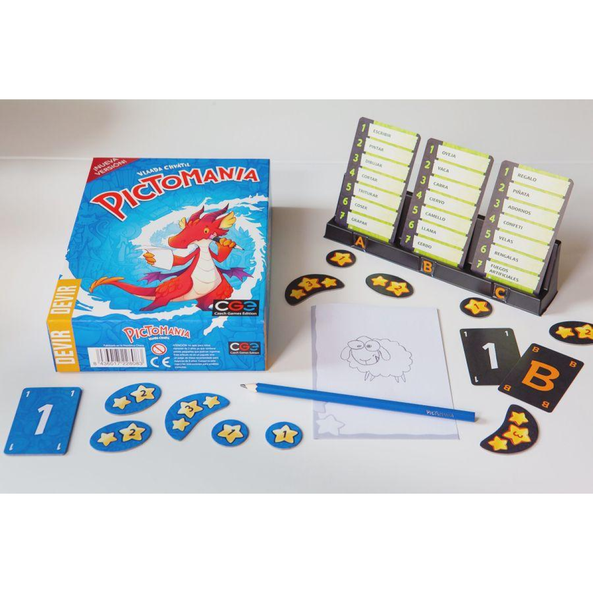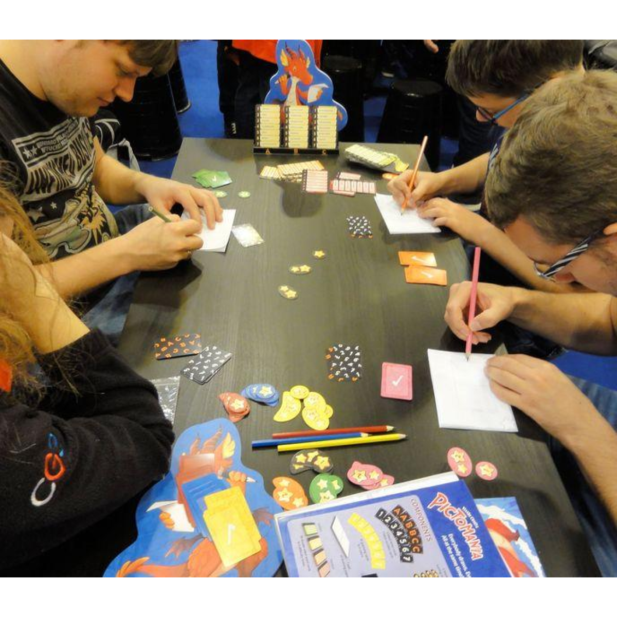 У «Піктоманії» учасники одночасно малюють завдання й відгадають, що малюють суперники. Перед початком гри вони отримують листи, олівці, жетони зірок і карти догадок обраних кольорів.