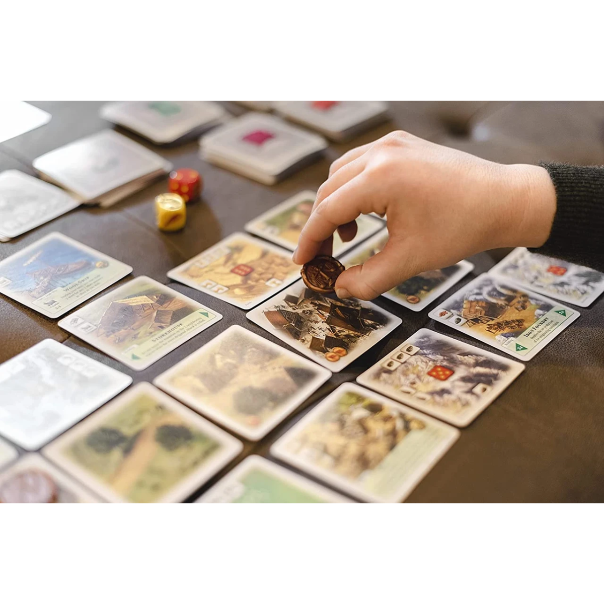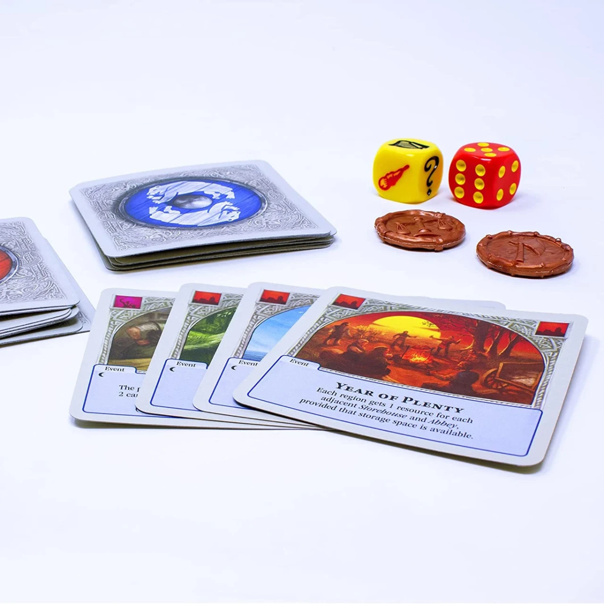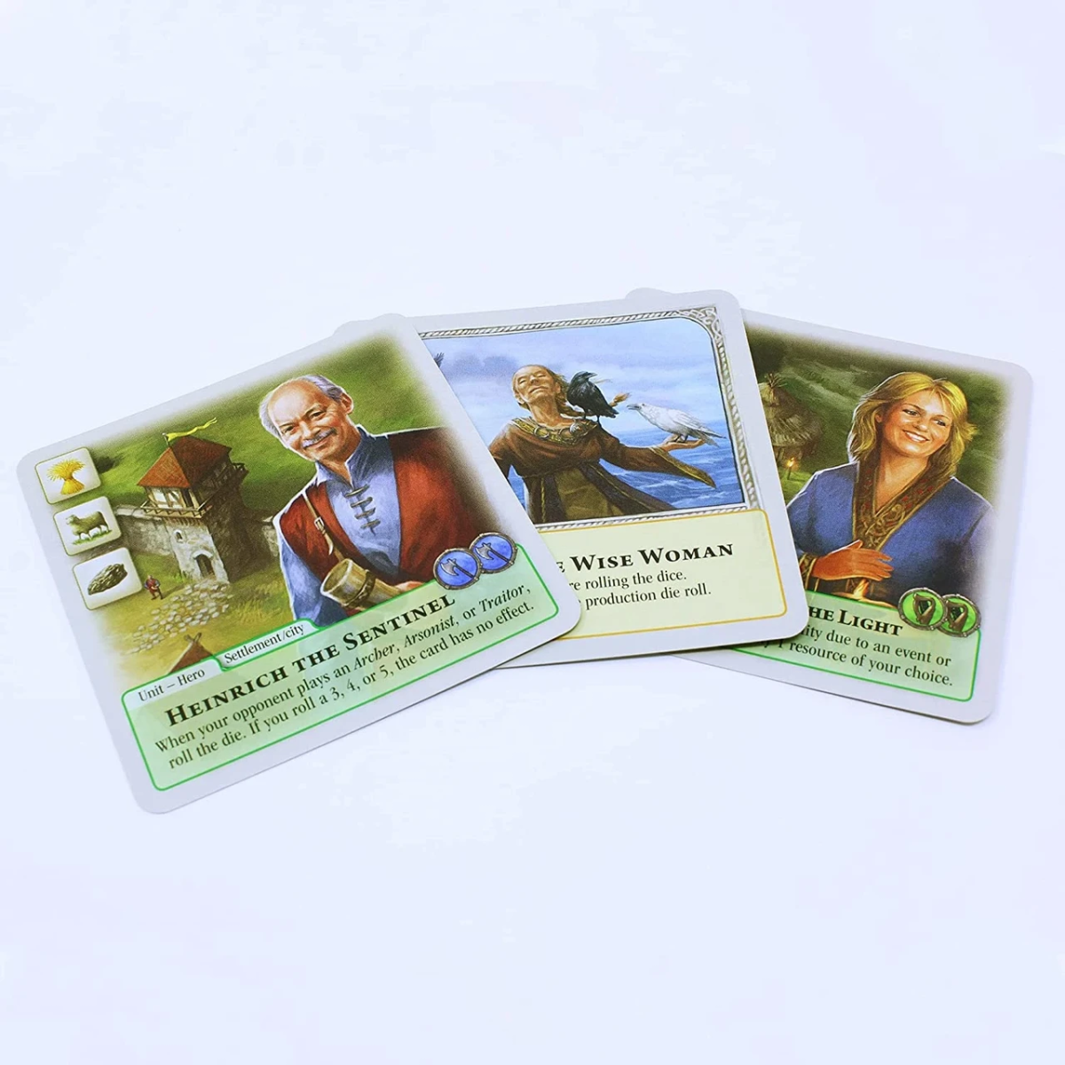 Ресурси можна отримати на мапах територій. Скільки і які саме ресурси доступні — вкажуть кидки кубиків. Один із кубів містить зображення шести різновидів ресурсів, а другий — числа від 1 до 6. Самі ресурси абсолютно такі самі, як і в базовій грі: ліс, глина, руда, пшениця, золото та вівці.