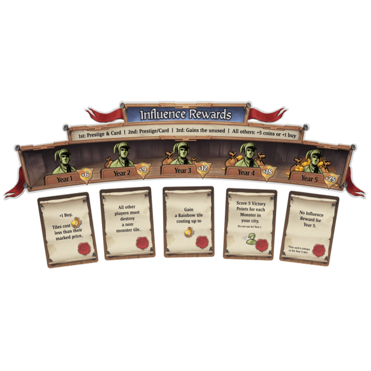 Після кожного раунду будівництва гравці витрачають витрачені монети на два нових тайли. Крім нових тайлів, учасники гри отримують плитку монстра, який безумовно внесе хаос в ідеально сплановане будівництво. Кожен гравець таємно вирішує, на які ресурси переробити невикористову магію. Гравці з найбільшим рівнем впливу отримують нагороди. Гравець із найменшою кількістю престижу отримує додаткову безплатну плитку.