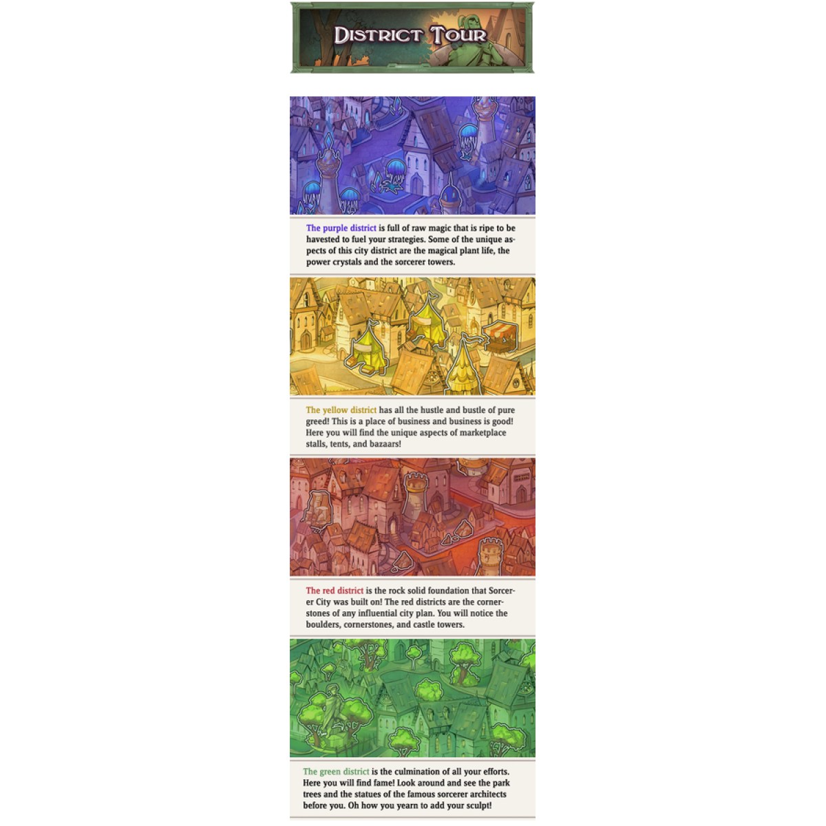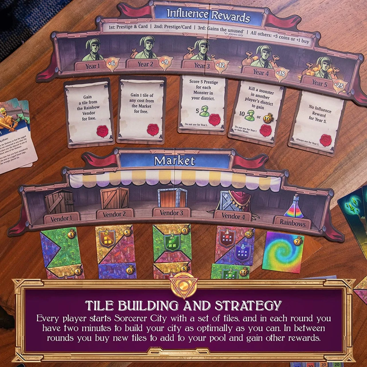 Настільна гра «Місто чарівників» — градобудівна стратегія з привабливими компонентами. Основна механіка гри — виставлення тайлів у реальному часі. Учасники гри на час партії перетворюються на магів-архітекторів, які змагатисямуть у своїх магічних здібностях, будуючи міста.