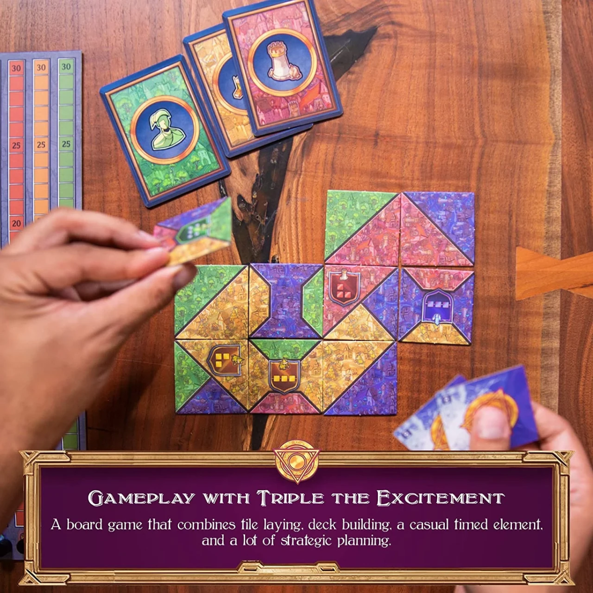 Гравці замішують свій набір з 12 плиток і розміщують його обличчям біля себе. Фаза будівництва обмежена двома хвилинами, для відліку використовуються пісочний годинник. Гравці за обмежений час розміщують тайли, приєднуючи їх по черзі зі стопки, для отримання грошей, впливу та магії. Плитки можна приєднувати будь-яким боком і будь-яким кольором, колір щита відповідає типу переможних очок. І не забудьте піддивитися, що будують ваші суперники — це може внести корективи у ваші плани.