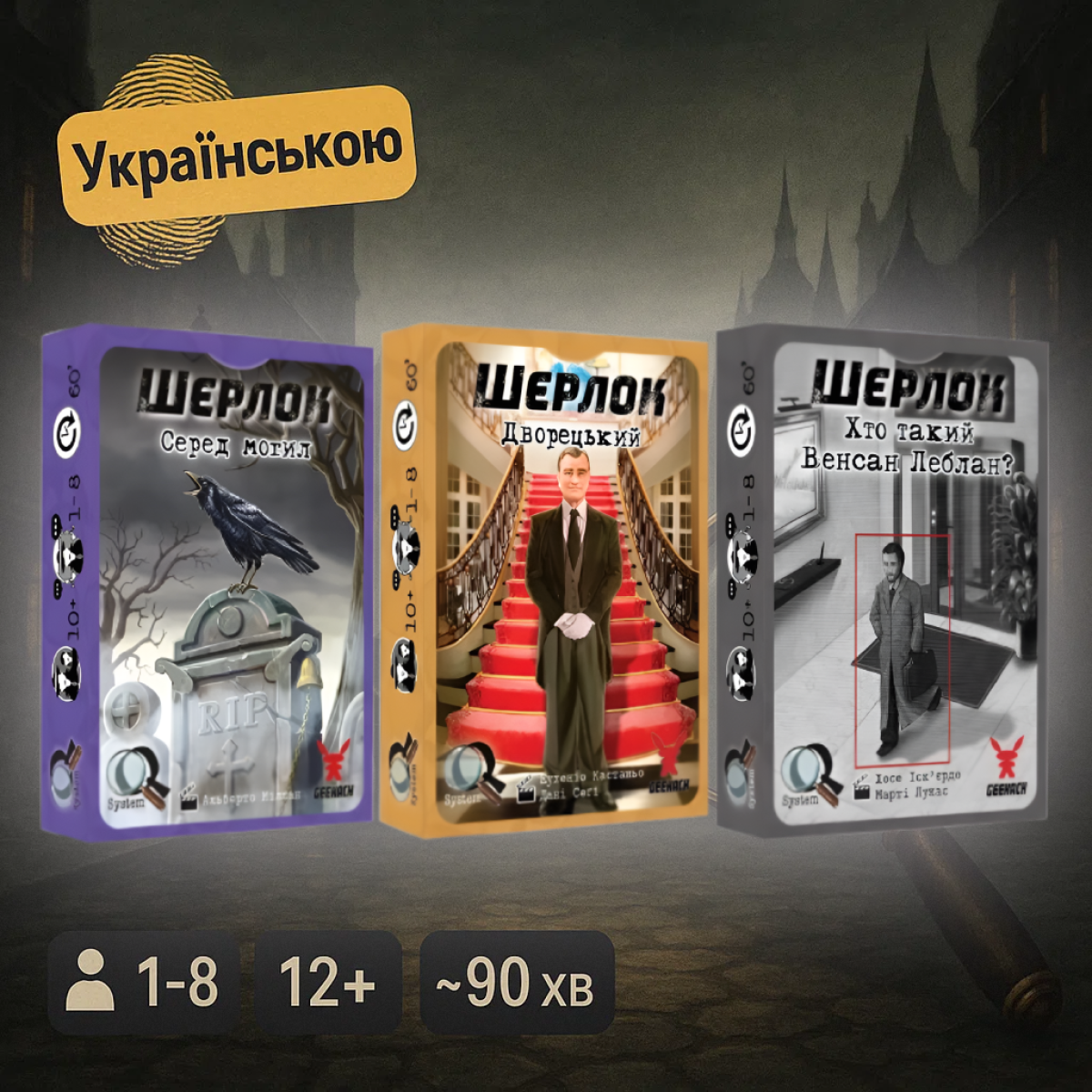 «Sherlock» (також відома як «Елементарно») – популярна серія швидких детективних кооперативів для 1-8 гравців. У 2019 році ця гра стала номінантом престижного конкурсу «Spiel des Jahres» (Гра року в Німеччині). У кожній коробочці гравців чекає окрема справа. Це цікавий детективний філлер, який можна розслідувати соло, з друзями або членами сім’ї.