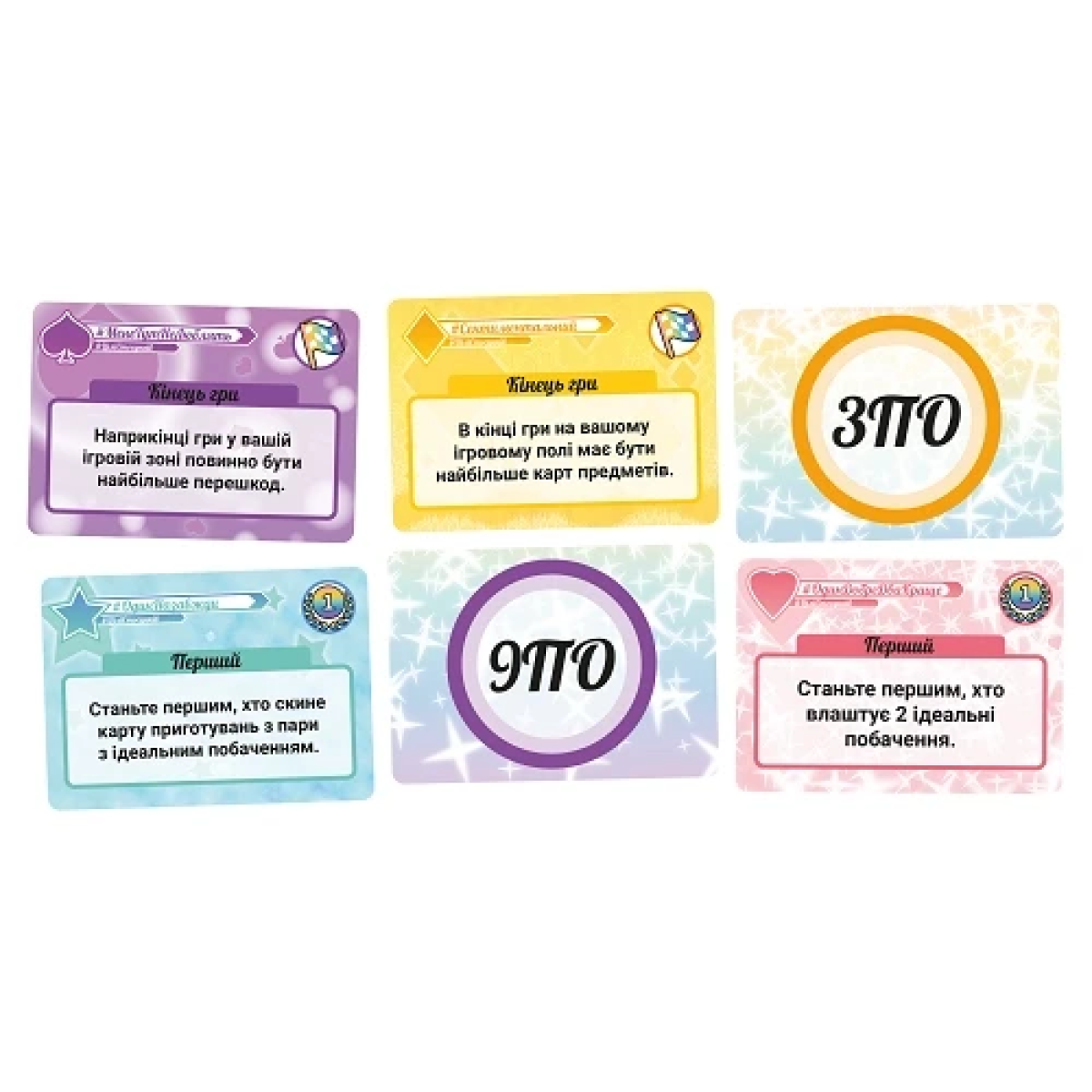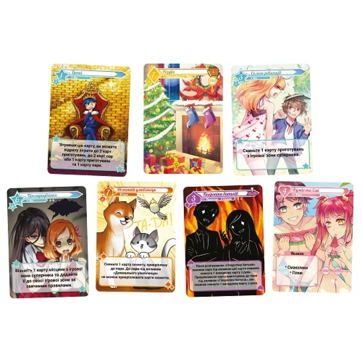 Усі карти поділяються на кілька типів. Насамперед це карти «Пара», на яких зазначено, що саме для цієї пари вважається ознаками ідеального побачення. По суті – це покажчики, за який набір карток гравці отримають переможні очки.