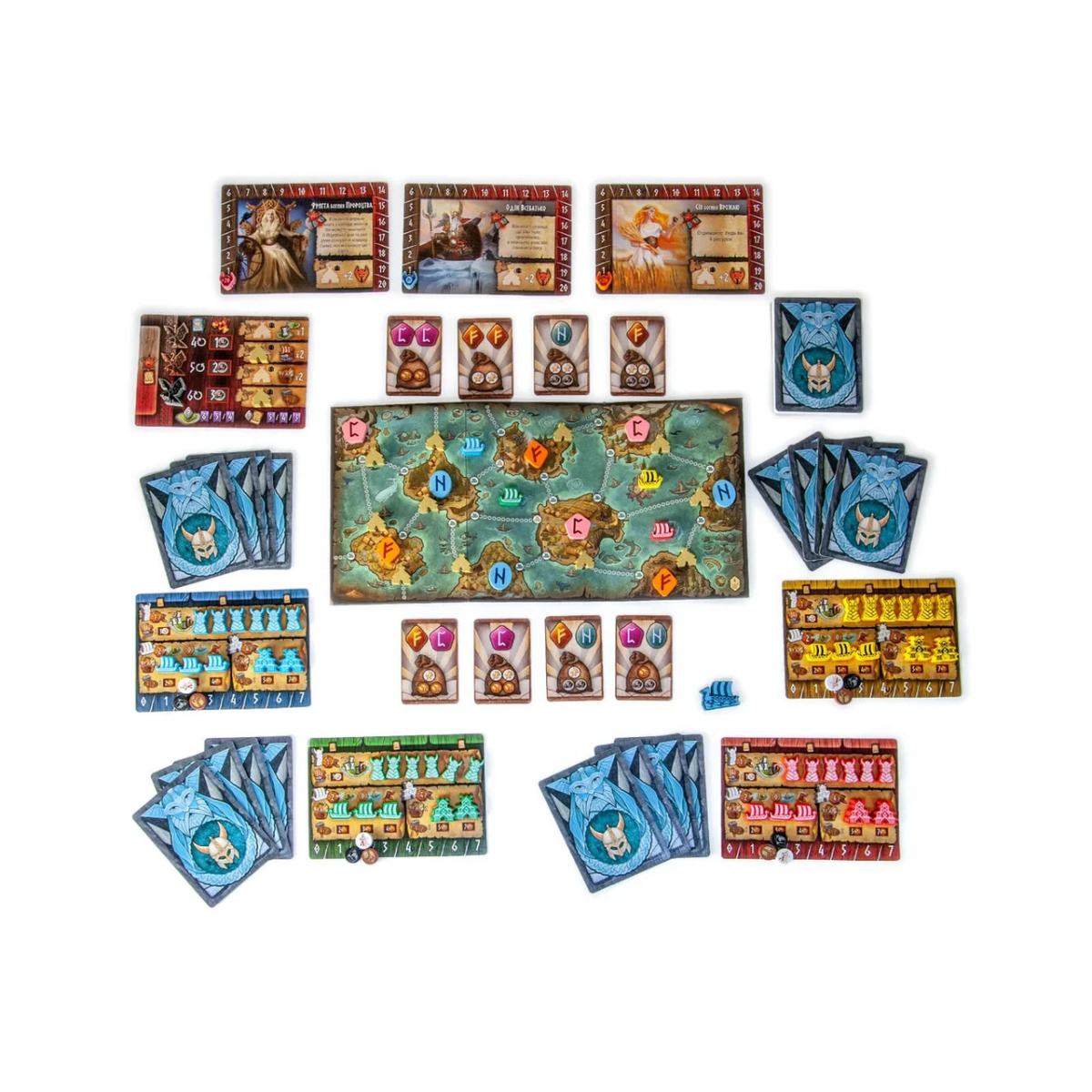 Крім ресурсів ви також послуговуватиметеся трьома типами рун, кожна з яких перебуває в зоні відповідальності одного з богів. Їх ви одержуватимете за розігрування картки вікінгів або ж за здобуття контролю над островами, в активному стані, і братимете з карт прихильності, в пасивному. Будьте уважними до рун, адже це символи сили, що можуть покращити ваші здібності чи дозволять виконати спеціальні дії. А також пасивні руни — складова вашої майбутньої перемоги! Підрахуйте переможні бали, коли буде зіграно третю фазу третьої епохи, зарахуйте собі відповідну кількість за руни з островів і окремо за руни з карток прихильності богів.