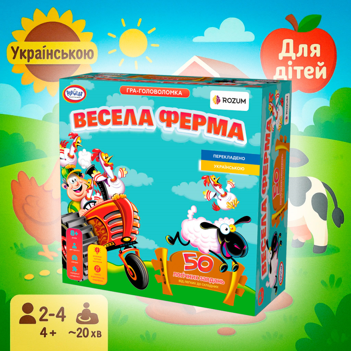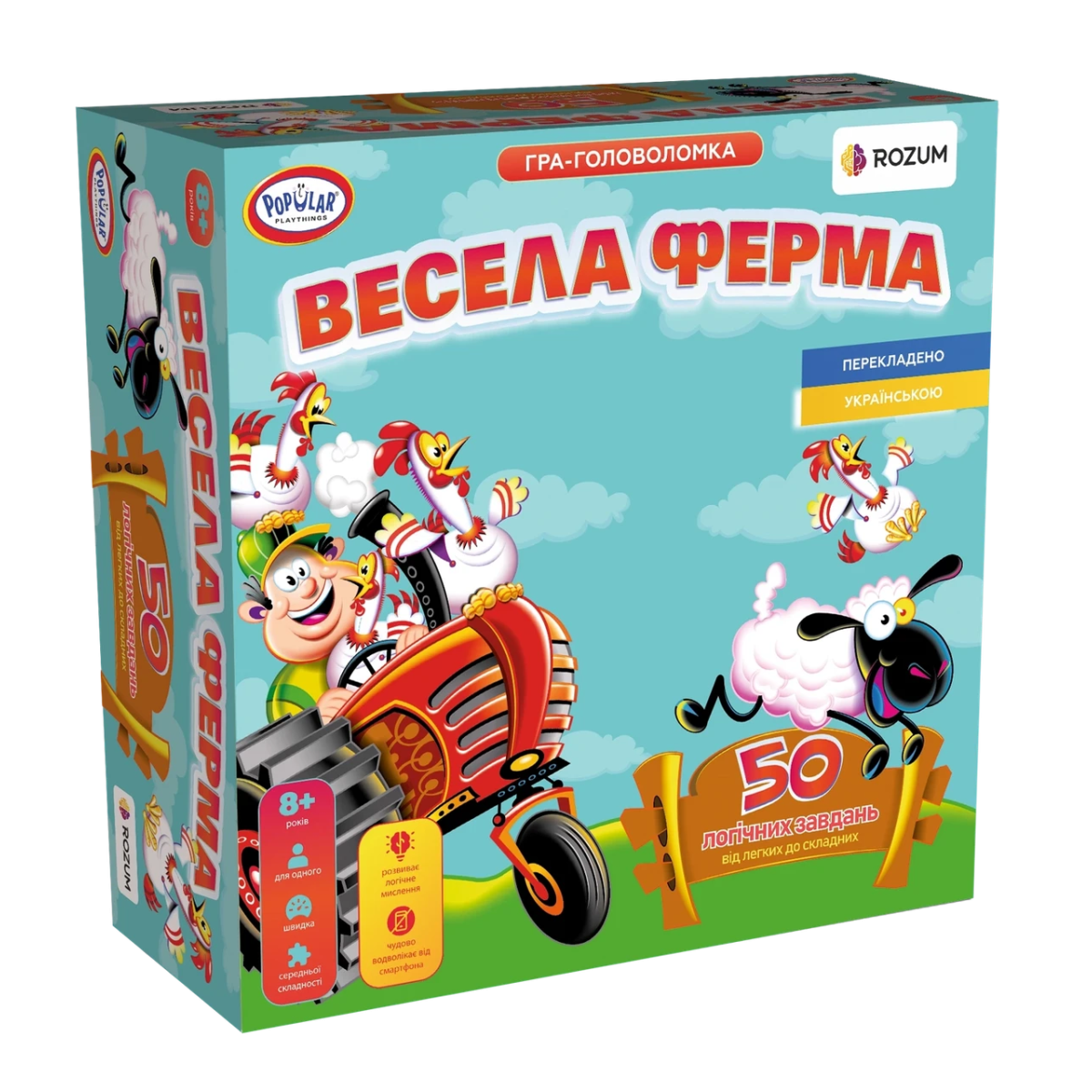 Настільна гра «Весела Ферма» («Funny Farm»)- прекрасна логічна головоломка, яка пропонує зайнятися облаштуванням господарства. Це тривимірна соло-гра на розміщення деталей на полі. У неї може грати й більше учасників, якщо вони будуть діяти кооперативно. У буклеті міститься безліч завдань різних рівнів складності. З легкими завданнями може впоратися і шестирічна дитина, а над складними доведеться помізкувати навіть дорослим.