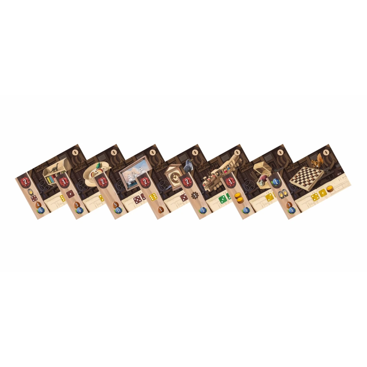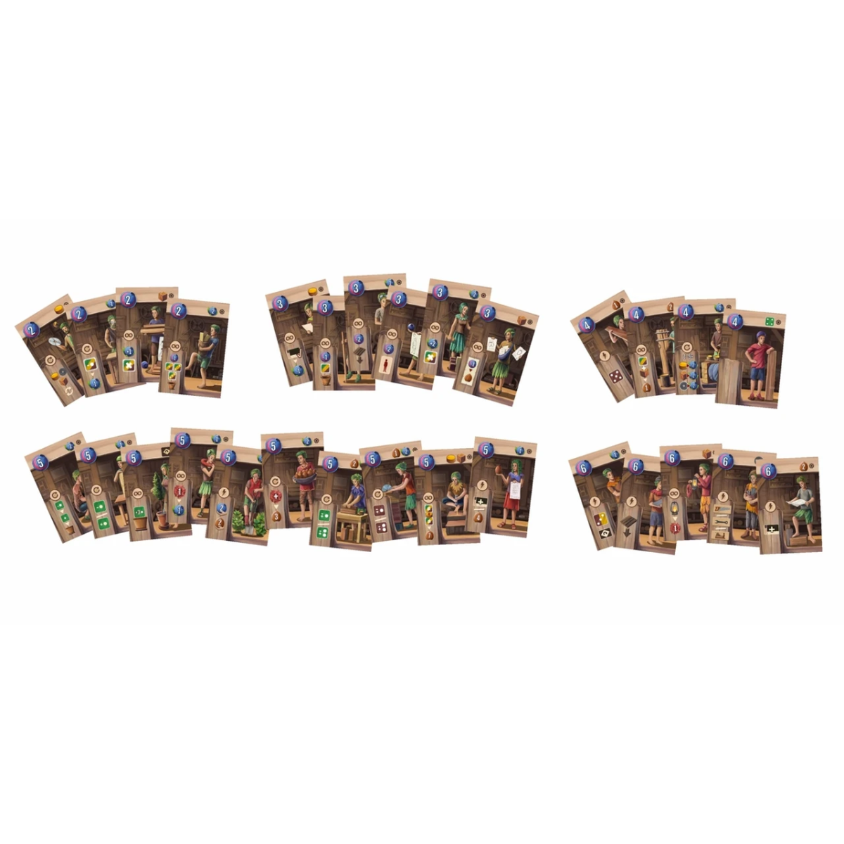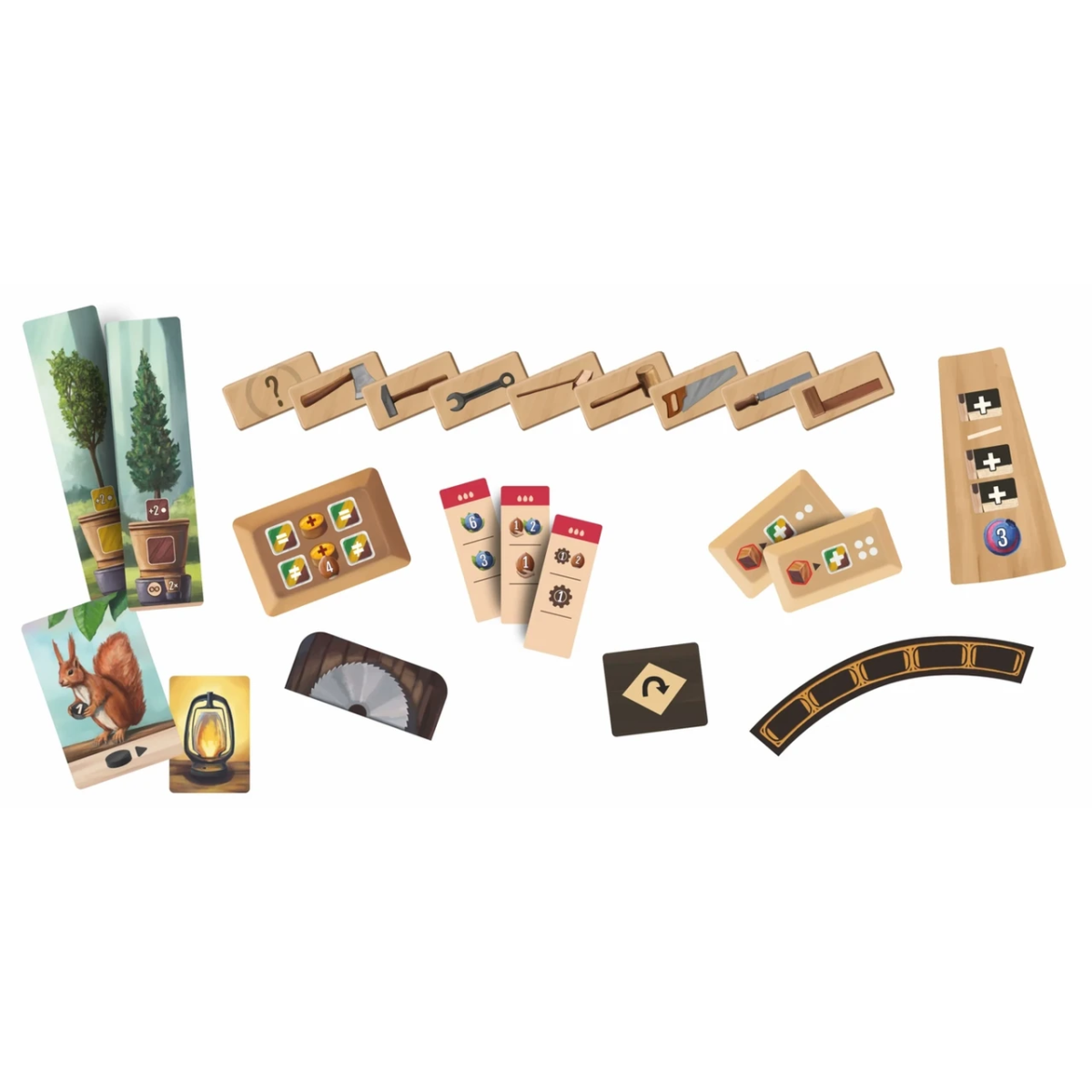 Дії необхідно комбінувати з властивостями ваших поліпшень майстерні та карт помічників, щоб отримувати та поліпшувати кубики одного з трьох кольорів - трьох сортів деревини, що необідні для виконання замовлень.