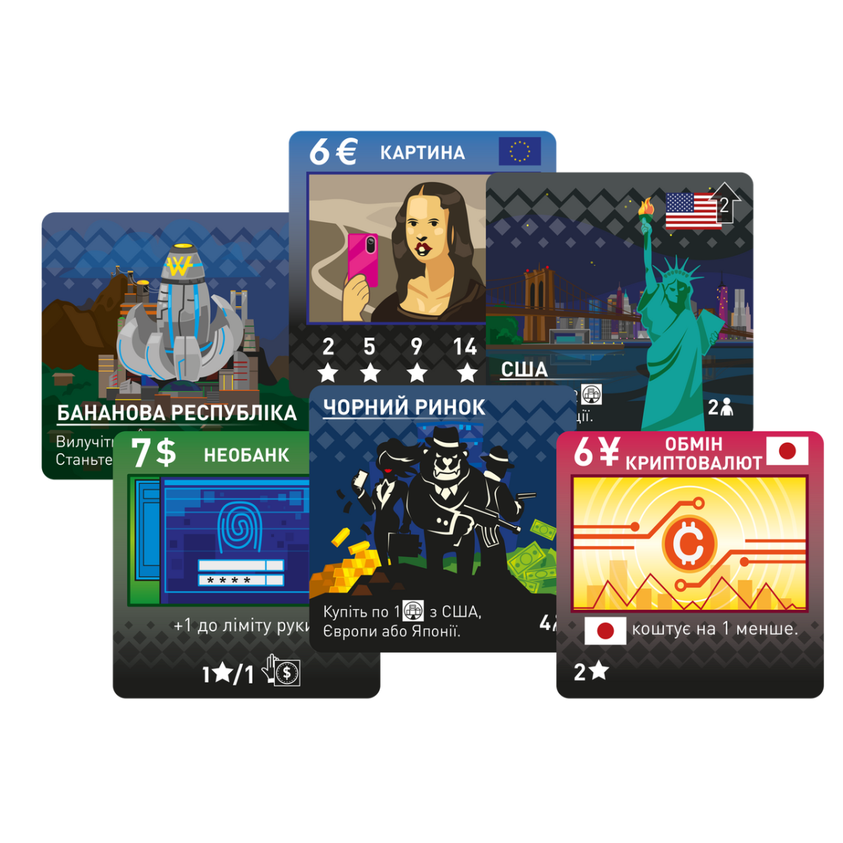 Локації в грі належать до трьох економічних стовпів — Японії, США та Європи, кожен із яких ставить у пріоритет свою валюту, проте не гнутий і сучасними методами оплати (крипто). «Бананова республіка», як водиться, не має нормальної валюти, а приймає будь-які гроші, навіть брудні.