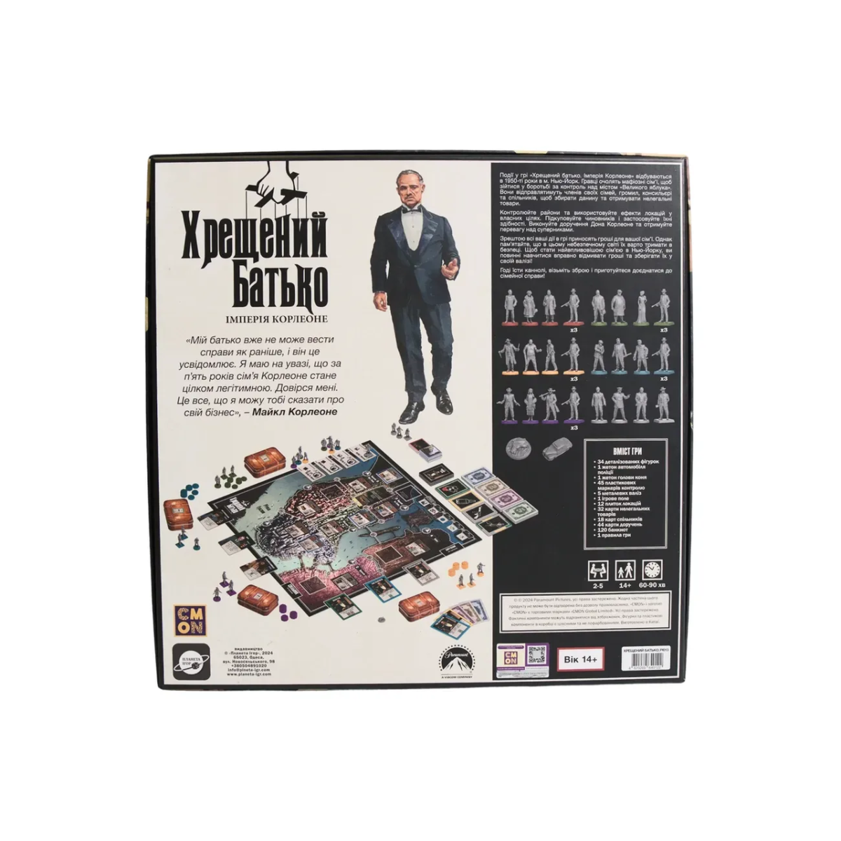Хрещений батько: Імперія Корлеоне — це глибока стратегічна гра, що перенесе вас у Нью-Йорк 40-х років XX століття. Ви — голова мафіозного клану, який змагається за вплив, гроші та повагу. Ваша мета — довести, що саме ви гідні очолити кримінальну імперію замість самого Дона Корлеоне.