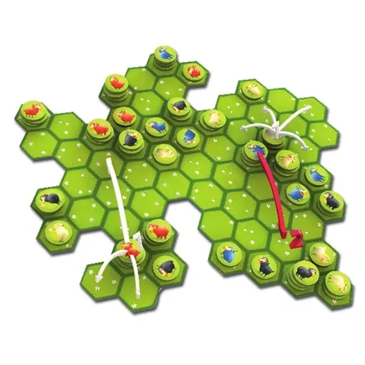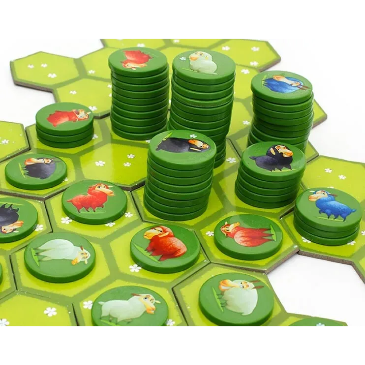 Модульне ігрове поле: Пасовище складається з окремих гексів, які щоразу збираються по-новому. Це гарантує, що кожна партія буде унікальною та вимагатиме нової стратегії адаптації до ландшафту.
