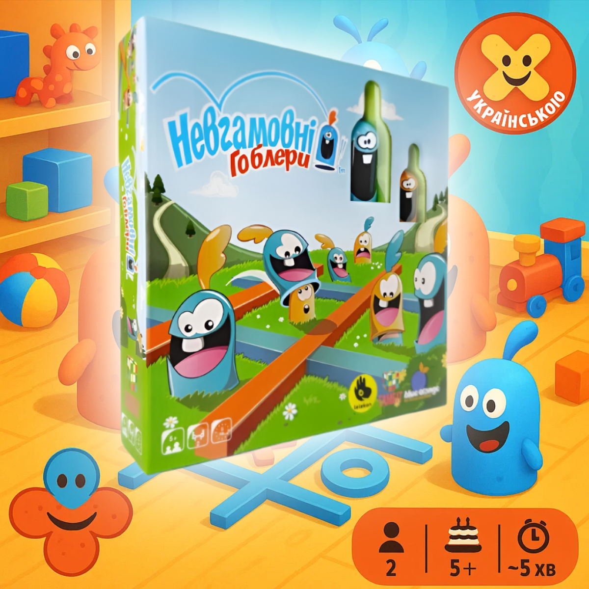 ???? Приготуйтеся до кумедної та стратегічної дуелі з настільною грою Невгамовні гоблери! Це яскрава, динамічна та неймовірно захоплива варіація відомої гри “хрестики-нулики“, яка змусить вас по-новому поглянути на прості правила та оцінити хитрі тактичні ходи. Чи зможете ви перехитрити свого опонента і вибудувати три своїх гоблера в ряд?